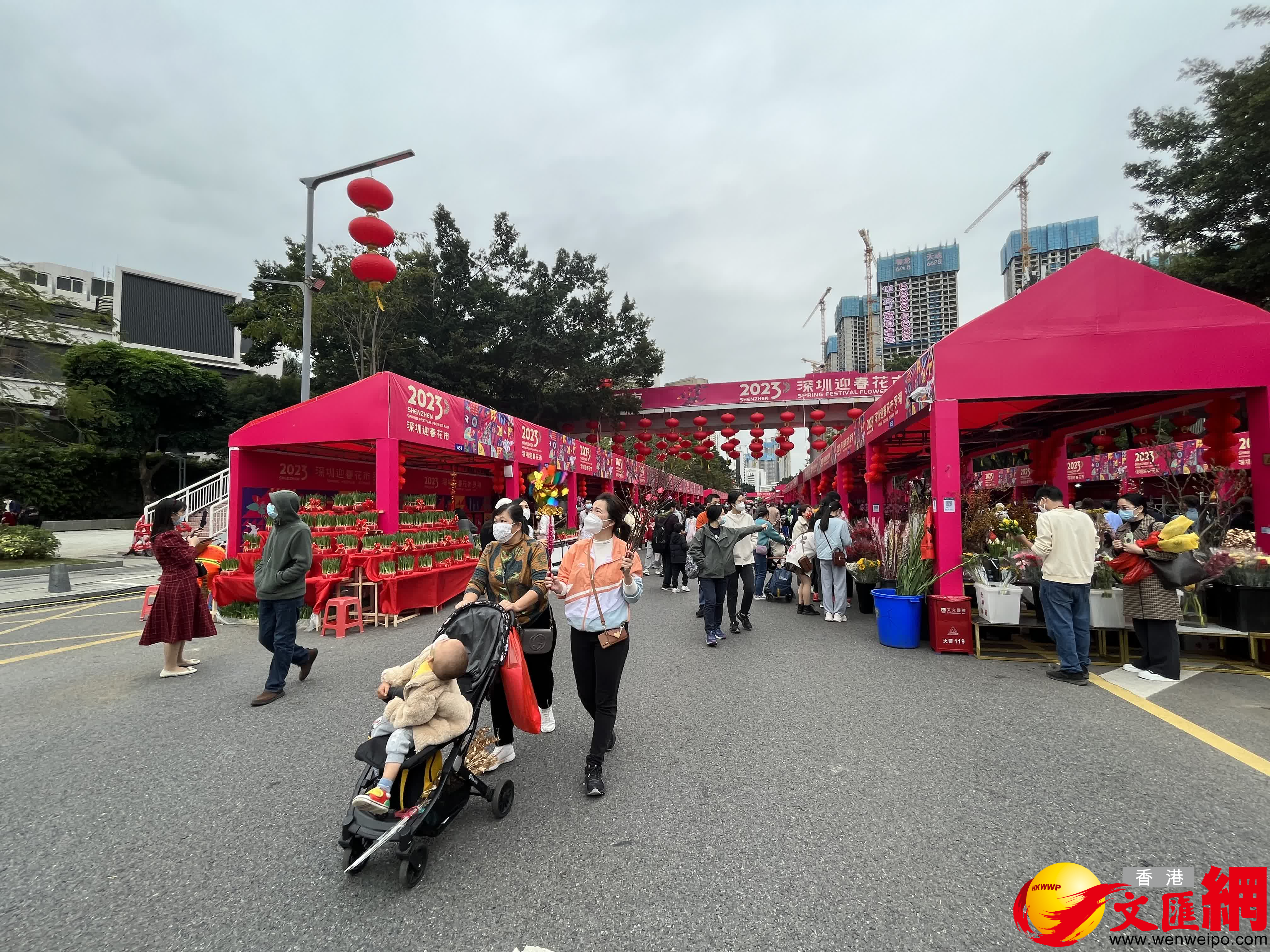 (香港文匯網記者 李望賢 深圳報道)花市熱鬧開幕,年味濃濃迎新春。深圳愛國路花市時隔六年重啟,除了爭奇鬥豔的年花,還有花車巡遊、夜市燈會、漢服快閃、祈願賞花燈等全新體驗,年味十足、驚喜滿滿。不少市民感慨,逛一逛花市,重新感受到了過年的喜慶氣氛,有了「年味」。特別值得一提的是,深港通關逐步復常,花市開展期間,羅湖特別設置口岸穿梭巴士,途經愛國路花市及東門、蔡屋圍、筍崗、水貝、人民南等五大核心商業街區,現場亦設置巨大的招牌歡迎港人。