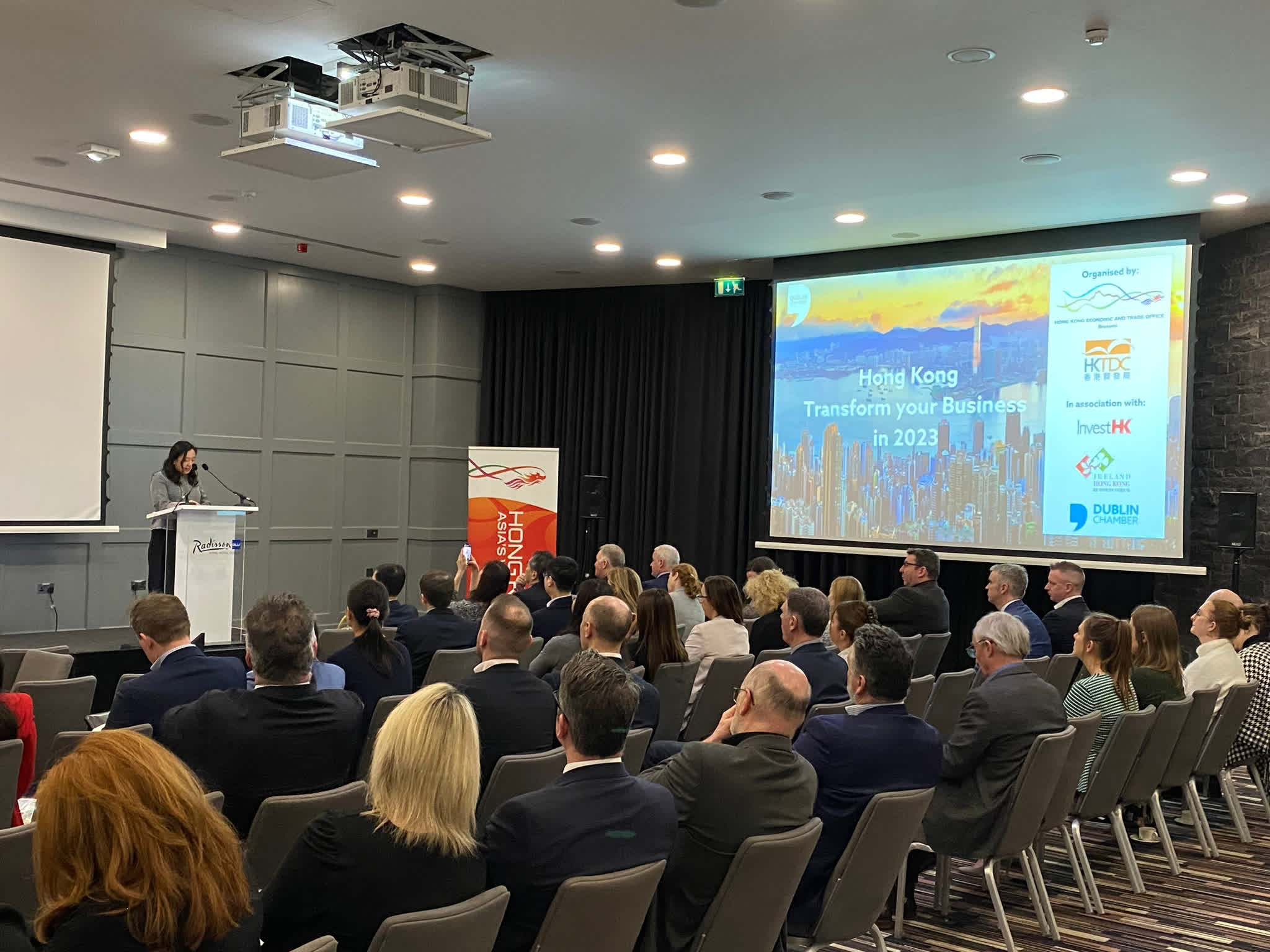李慧婷闡述了香港在金融服務、物流和創新科技領域上的優勢,並鼓勵愛爾蘭企業善用香港的專業服務拓展亞洲市場。她表示:「為吸引企業和人才,政府已推出便利措施,令世界各地的企業和人才更容易到港營商和工作。」
