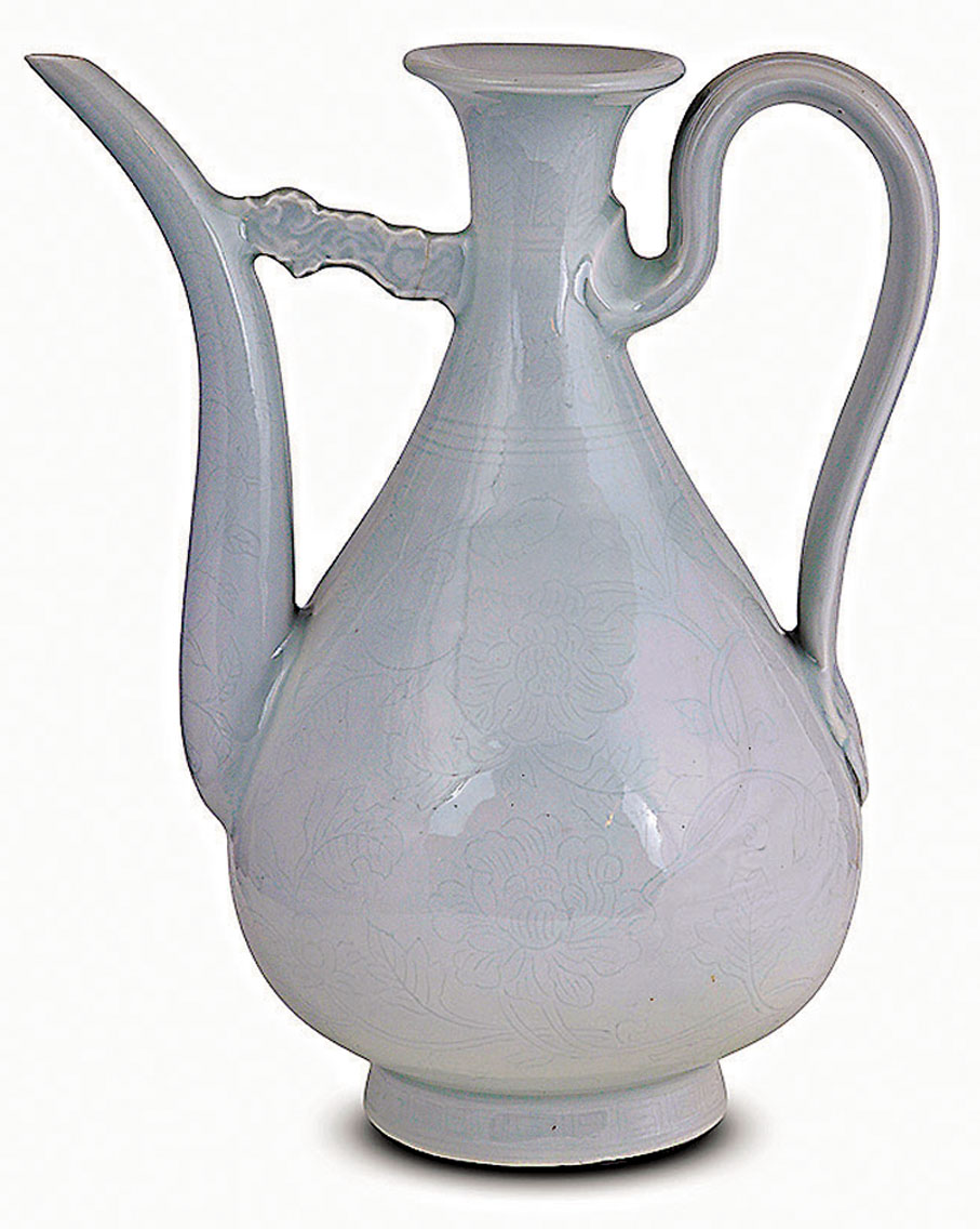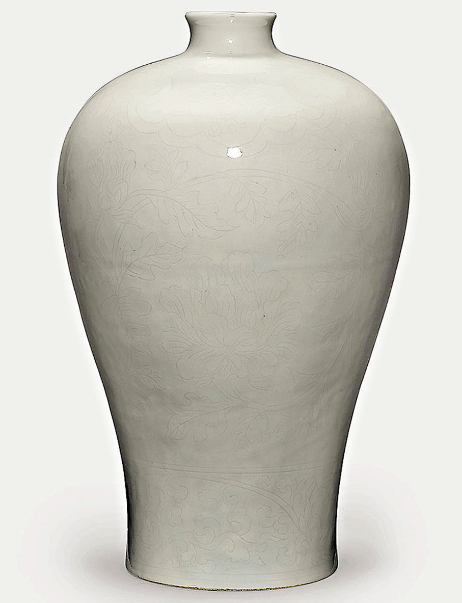 因瓷胎偏薄,增加了瓶身暗刻花的難度,留存不易,到現代更是彌足珍貴。筆者的收藏中亦有一件「明永樂甜白釉暗花執壺」。2017年,紐約蘇富比拍出一件「明永樂甜白釉暗花纏枝牡丹紋梅瓶」,成交價313.25萬美元,成為全場成交價之冠。◆作者:香港中華文化藝術推廣基金主席 李秀恒