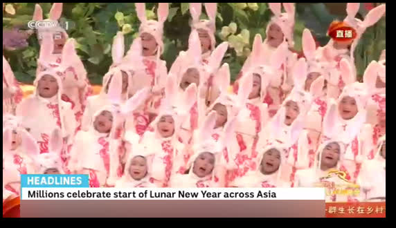 總台CGTN全平台共發布春晚相關報道3334條,全球閱讀量超過4.79億次;多語種主持人、主播發起的《兔子手勢舞》創意新媒體傳播活動,全球閱讀量突破3.4億。