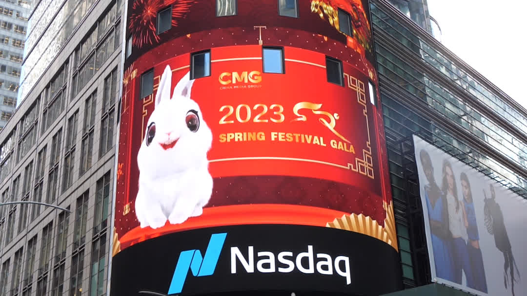 春節期間,總台春晚正片或宣傳片首度登陸海外1642塊戶外大屏和院線銀幕,其中歐美國家984塊。總台2023年春晚吉祥物「兔圓圓」首次登陸美國紐約、華盛頓、洛杉磯等五大城市772塊主流院線的電影屏幕。接地氣的祝福直達海外民眾,為影院增添了中國春節歡慶吉祥的氛圍。