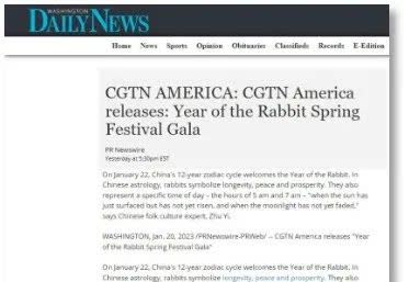 美國有線電視新聞網(CNN)通過美國本土頻道、國際歐洲/中東/非洲頻道、國際北美頻道和國際亞太頻道,及其網站、客戶端持續播出總台春晚宣傳片、春晚主題海報等,全球範圍內覆蓋超過3.95億用戶。