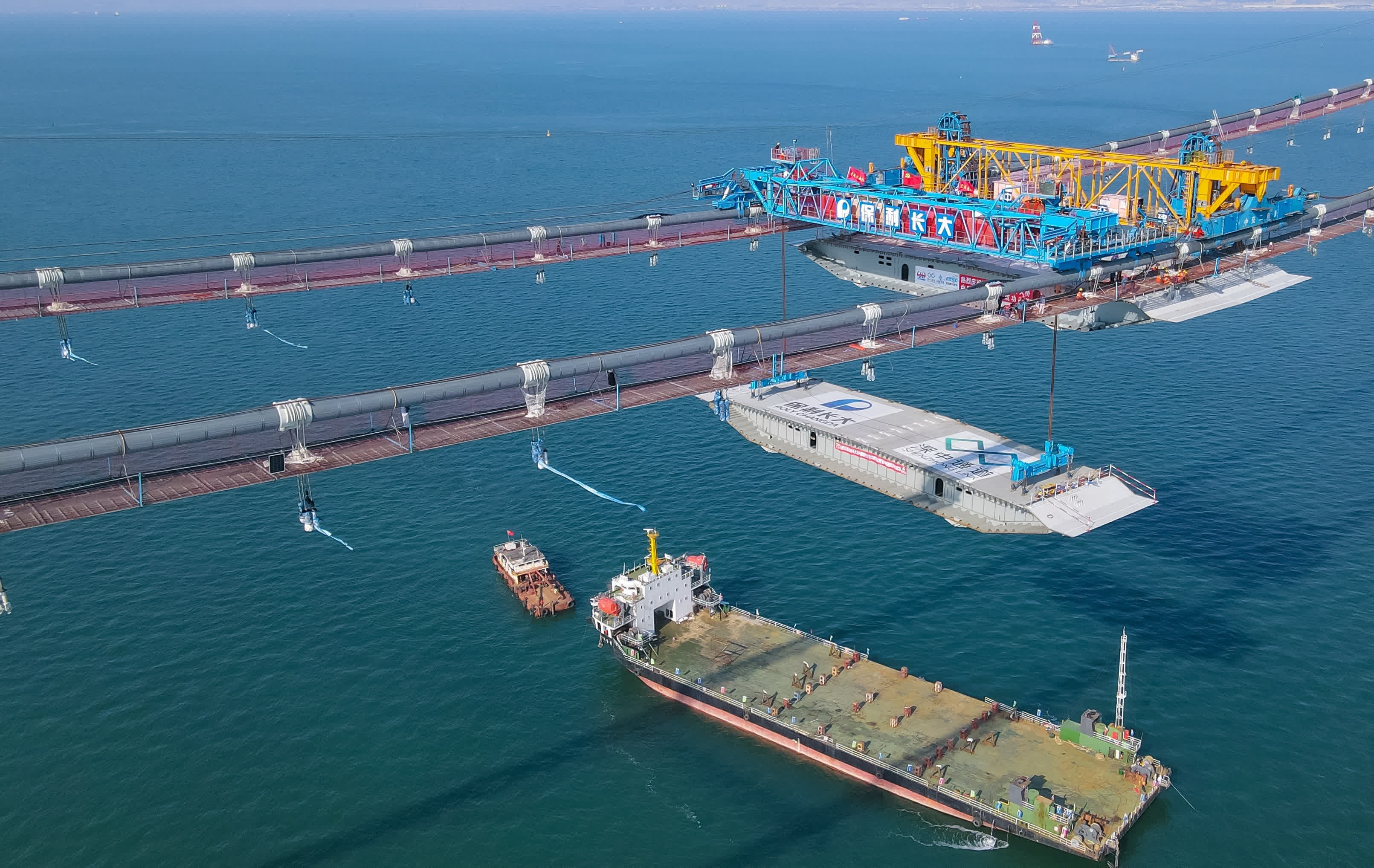 (香港文匯網記者 方俊明)新春伊始,「粵港澳大灣區重點樞紐工程」深中通道建設又傳捷報!記者今天(31日)從施工方獲悉,伶仃洋大橋主跨西側首件鋼箱梁吊裝近日完成;而該大橋預計今年4月底實現合龍。