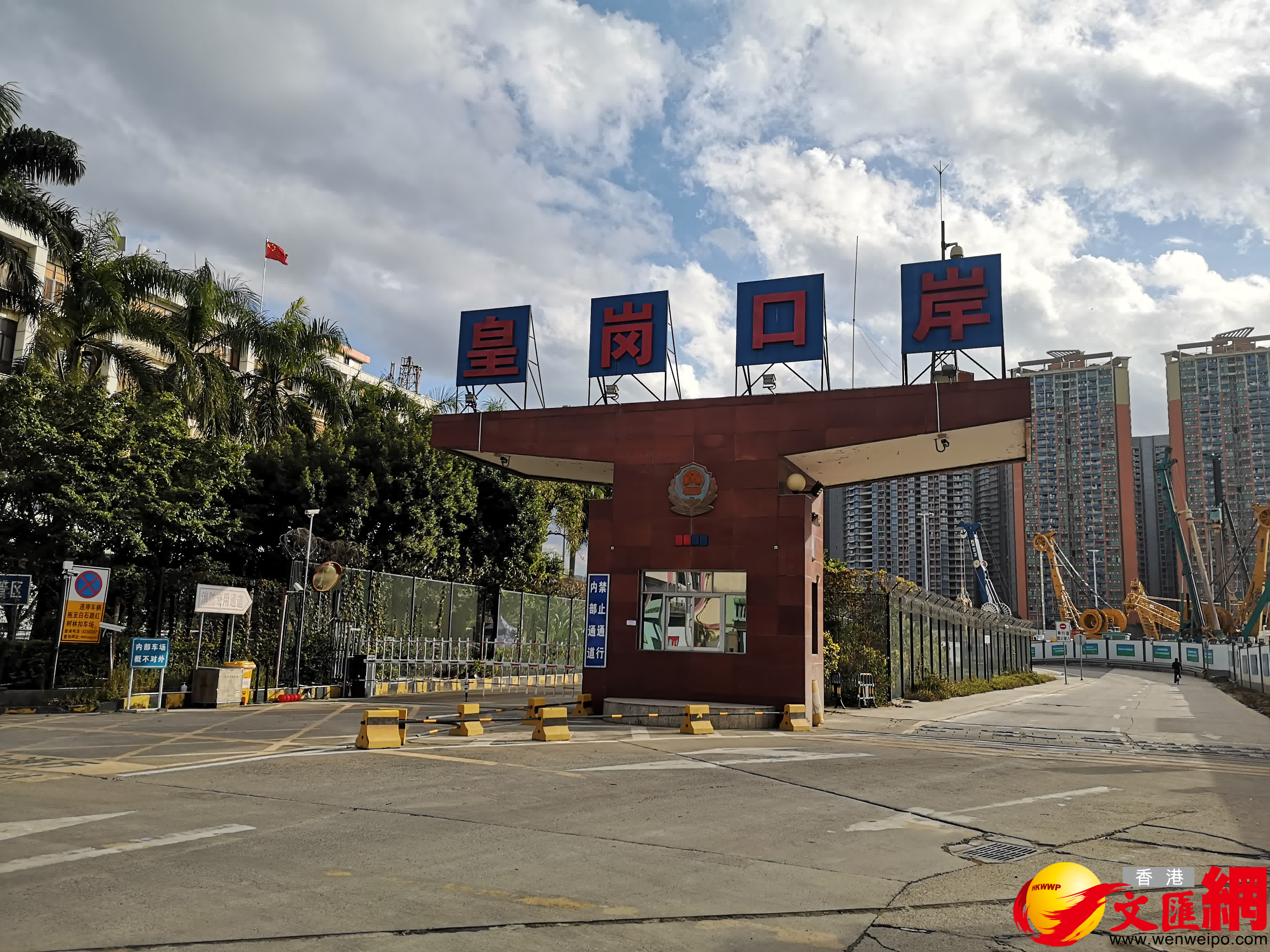 (香港文匯網記者石華、實習記者龔穎萱 深圳報道)31日下午,記者趕到皇崗口岸時發現,原旅檢大樓外側停滿了施工車輛,從工地外圍看,並無施工車輛進行施工,挖掘機都停止工作,只有一輛運土車和一輛洒水車工作。