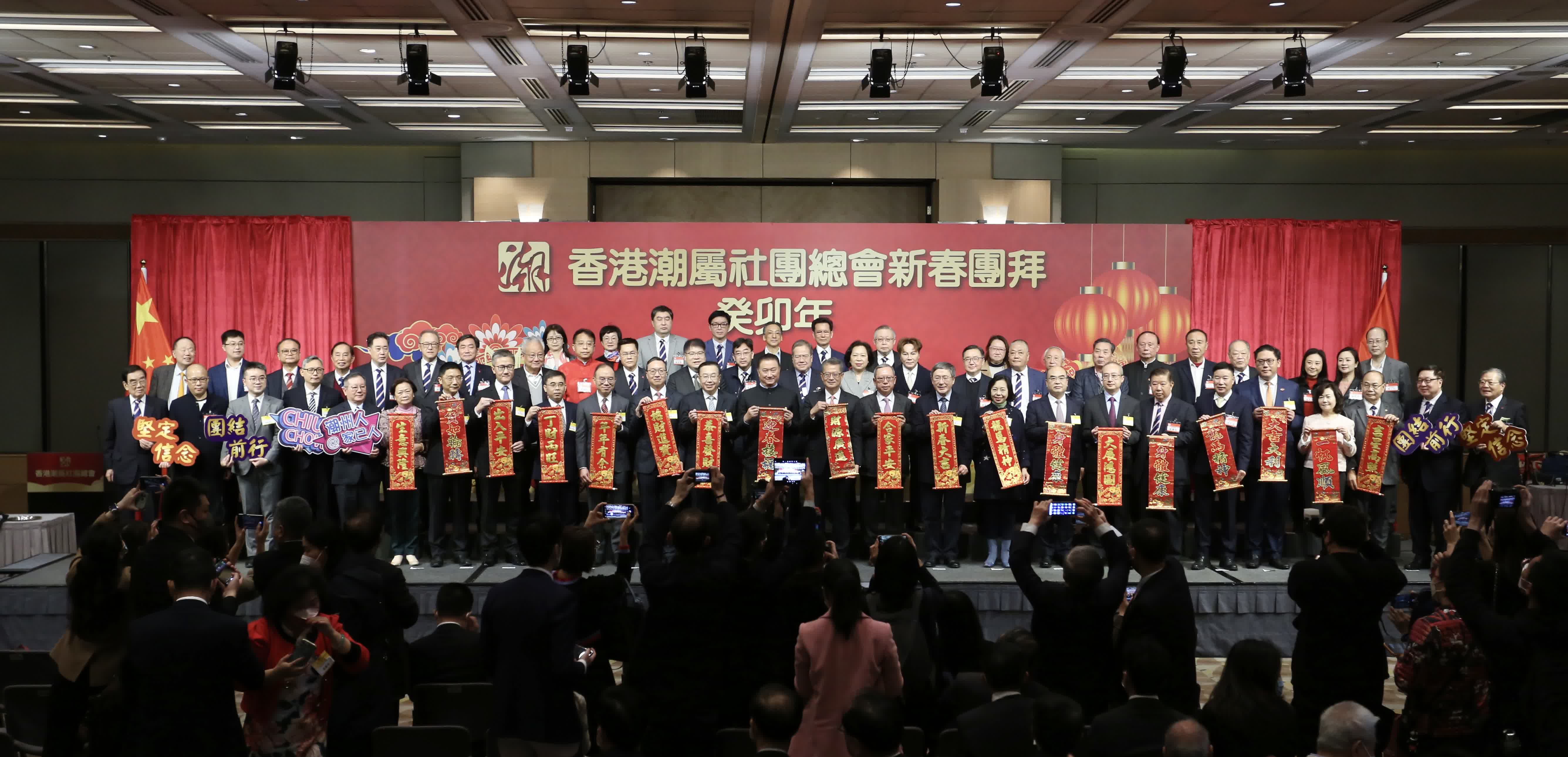香港潮屬社團總會監事會主席林建岳致辭時指出,隨着香港與內地的正常通關,尤其是高鐵復運,香港在復常路上提速前進,更讓香港背靠祖國、聯通世界的獨特優勢得到更大發揮。未來,香港將全力加緊招商引資,全力招聚人才,推動策略產業增添動能。新的一年,香港將乘國家發展之勢展現新飛躍,邁向新征程,在由治及興的大好形勢下,全方位說好香港故事。