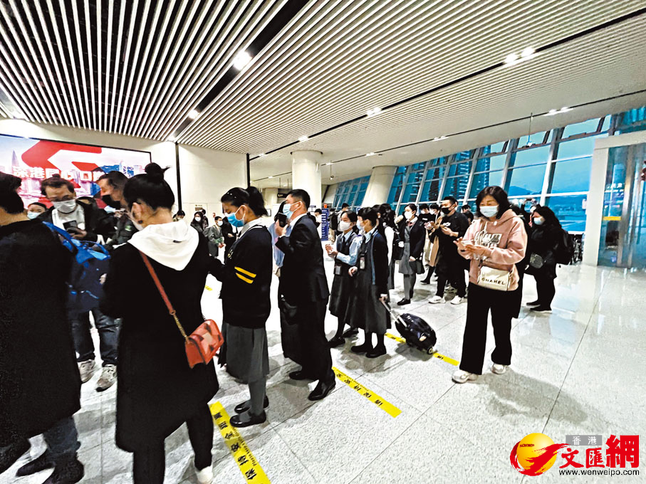 (香港文匯報記者 毛麗娟 深圳報道)2月6日早上六七點,晨光半朦朧中,羅湖口岸的深圳出境廣場迎來等待過關的人流「長龍」,一批批身穿各式香港校服、背着書包的跨境學童在家長的護送下,有序排隊緩緩走向口岸出境大廳。由於太久沒有過關上學,有小朋友已經忘記通關程序,陪同到口岸的媽媽反覆叮囑。也有家長感慨,家中小孩入讀香港小學三年來,今天將第一次走進香港學校,實現與老師同學的「網友見面」。