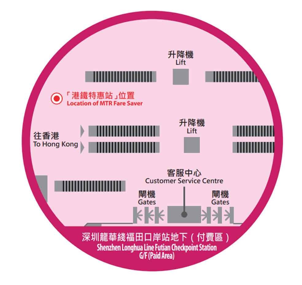 (如單程經落馬洲站去香港,拍「港鐵特惠站」享3元優惠。)
