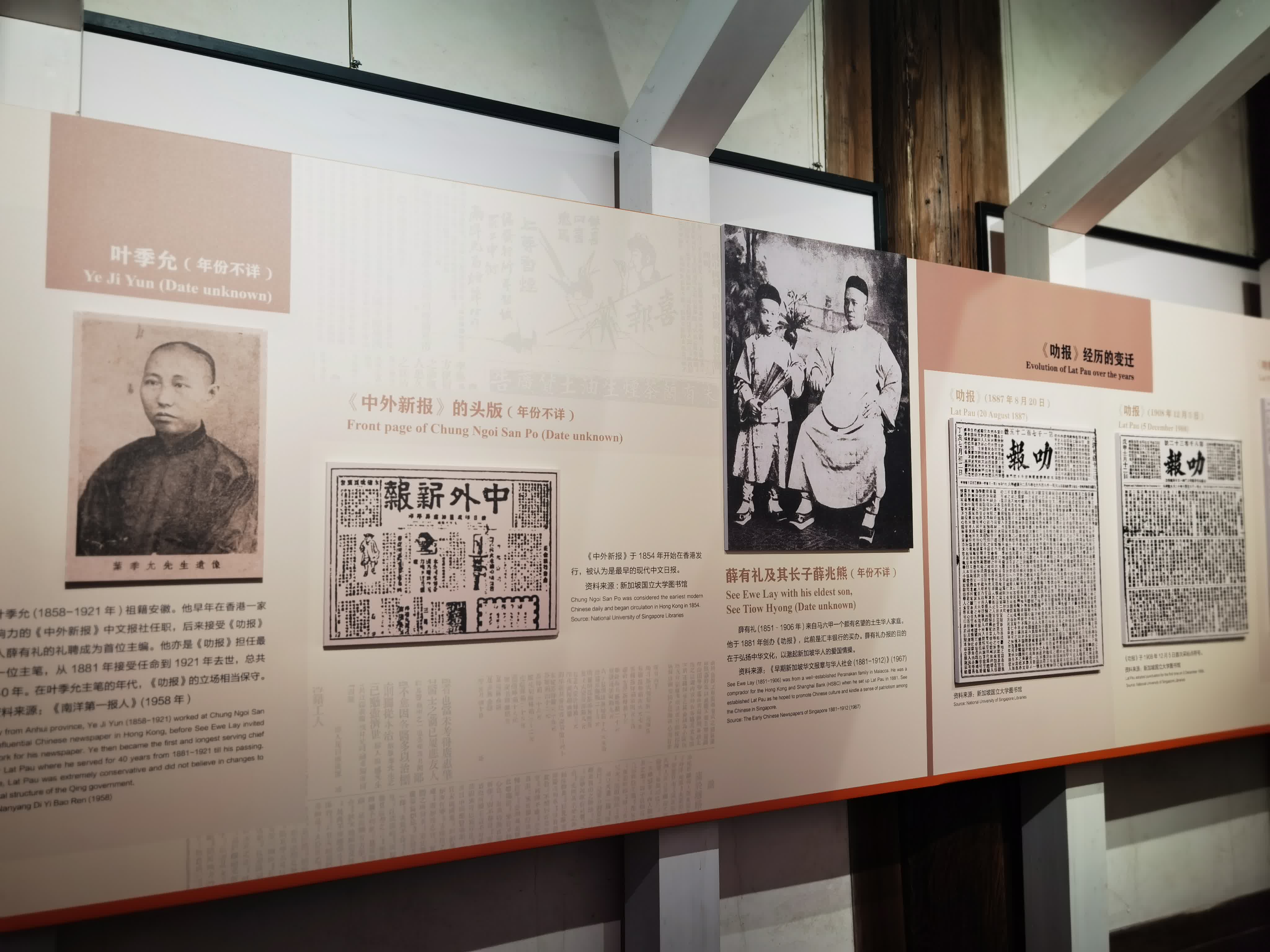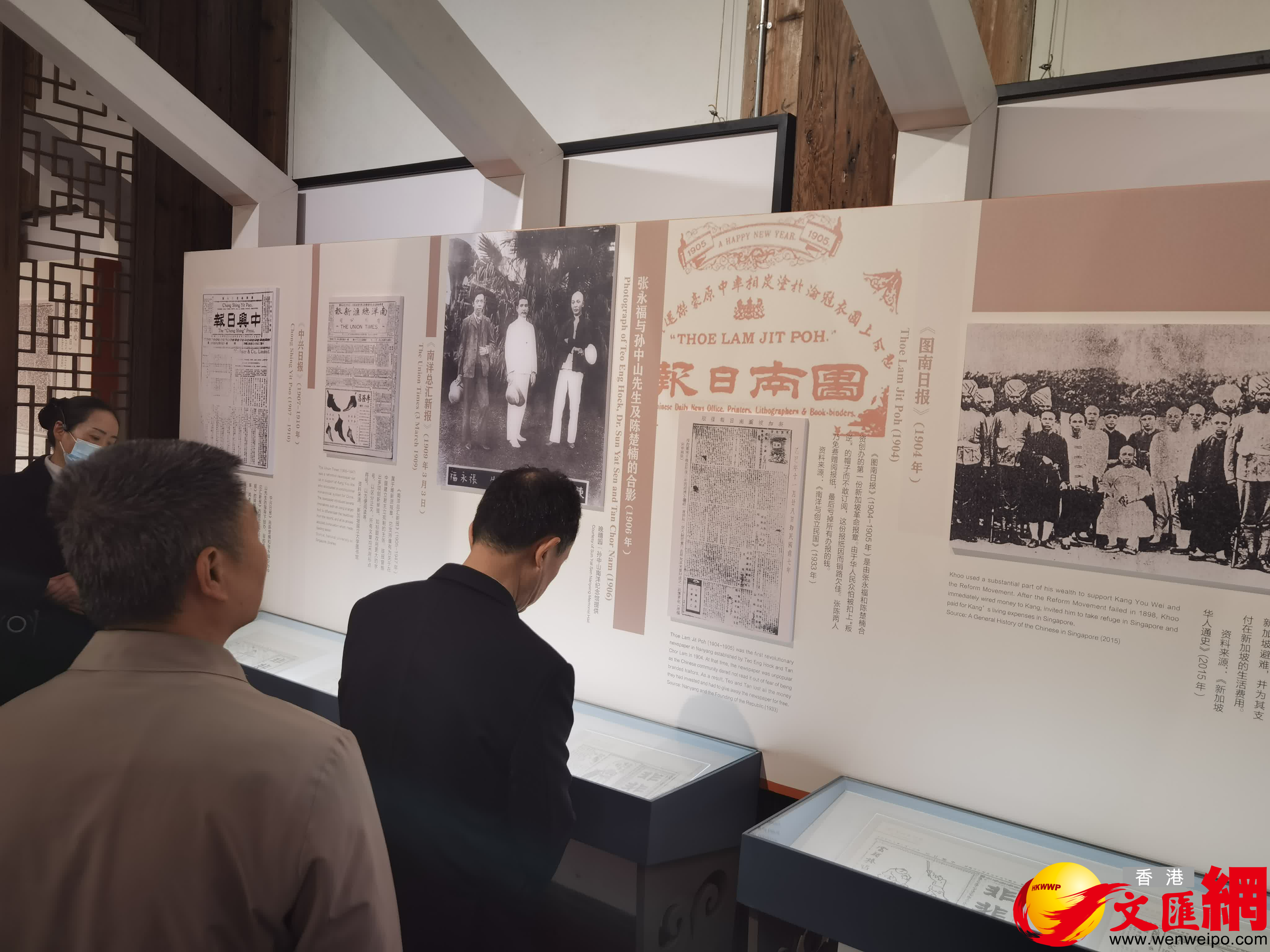 記者在現場看到,展覽由「千秋事業留報端」「但開風氣不為師」「青史憑誰定是非」「後生可畏更可愛」「絲路揚帆下南洋」「華風遠被到星洲」「明月何曾是兩鄉」「百年跨國兩地書」8個篇章組成。