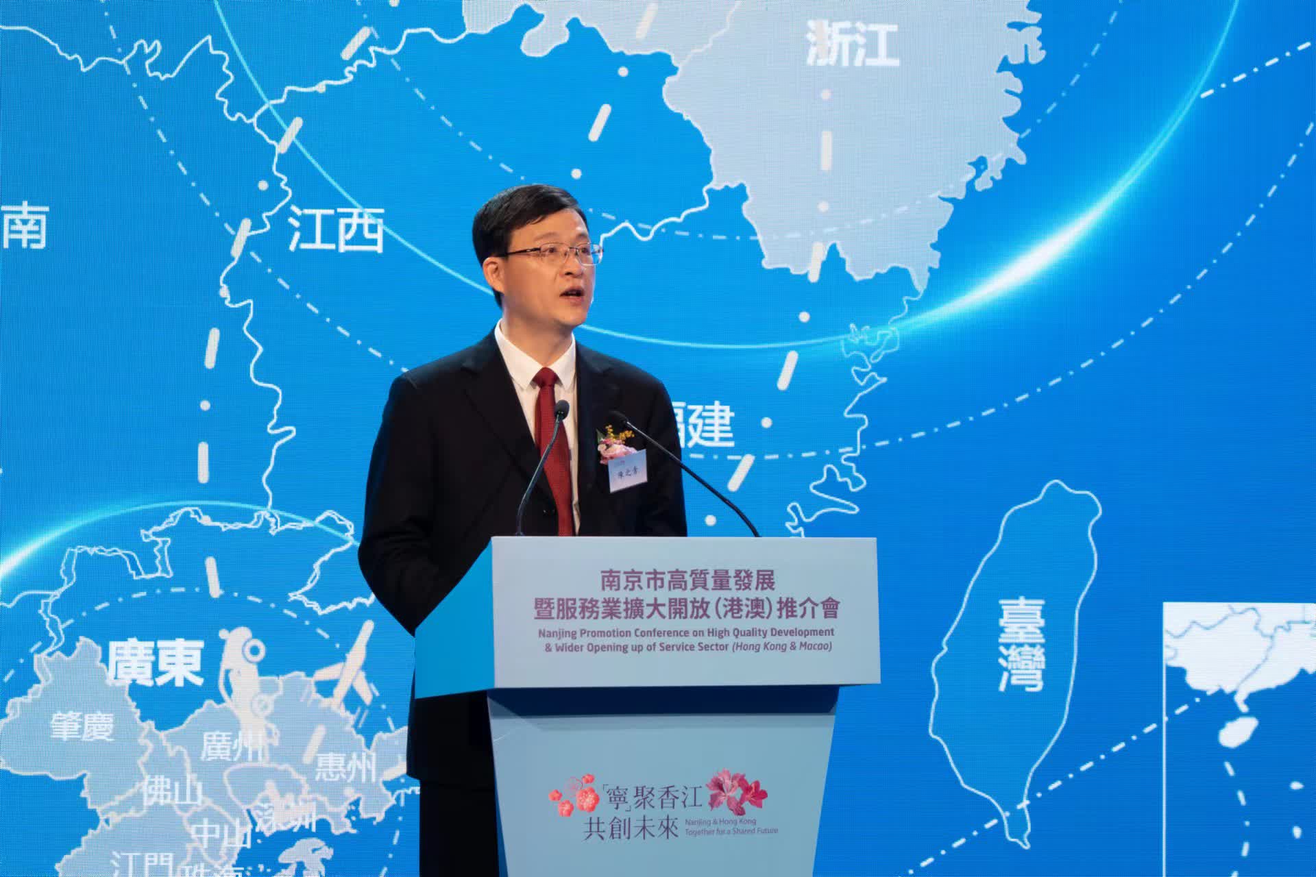 南京市市長陳之常此次帶一批重點企業來港尋求合作,共同開闢服務業擴大開放的廣闊空間。他在現場表示,香港是享譽世界的服務業發展高地,南京是內地以服務業見長的城市,服務業占GDP比重達62.2%,正在加快建設國際消費中心城市,具有廣闊的市場腹地和輻射空間。「去年12月,國務院正式批覆在南京開展服務業擴大開放綜合試點,授予我們104條高含金量開放政策,具有很強的首創性、突破性,對外資服務業進入內地市場給出了諸多利好。」