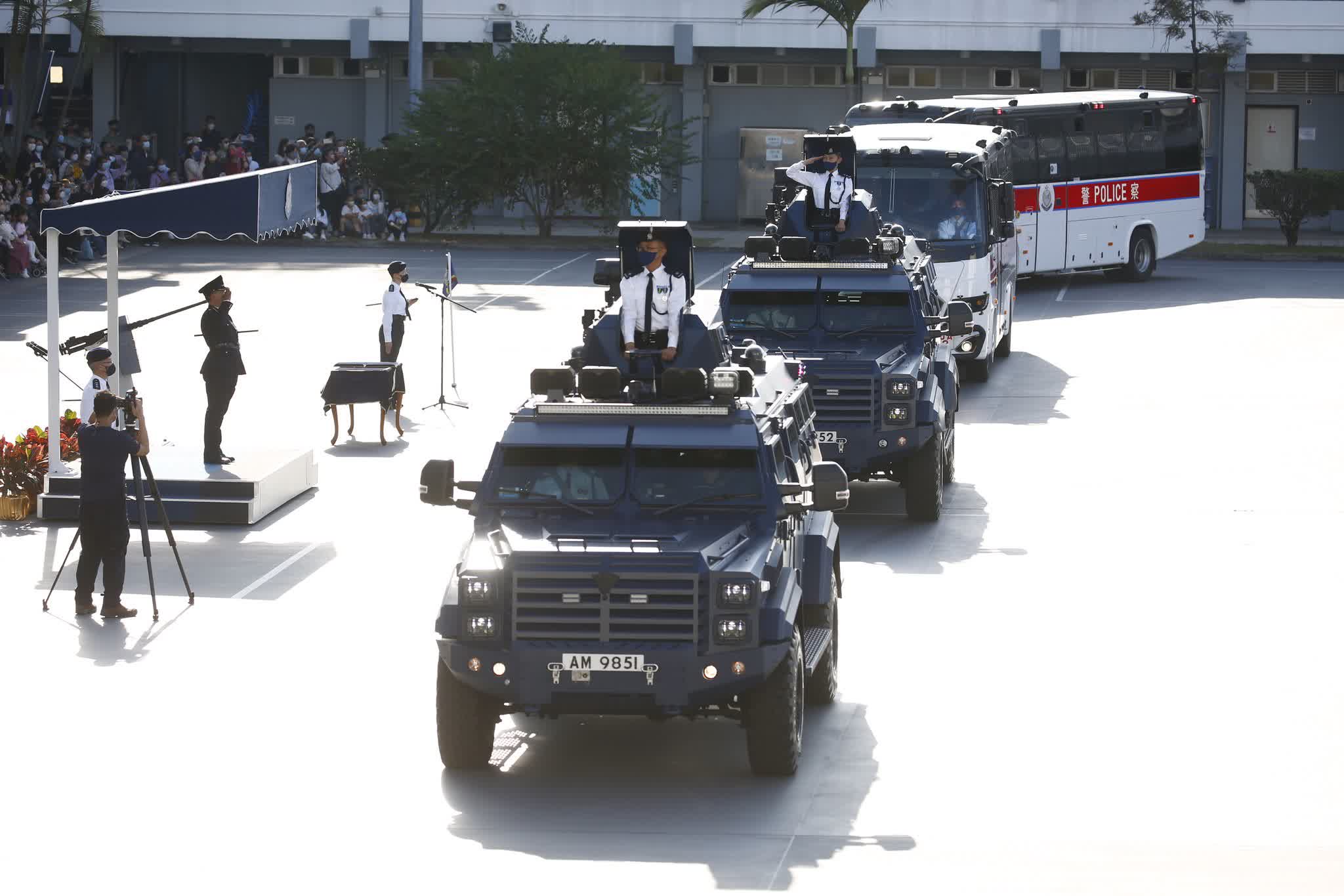 大公文匯全媒體報道:170名機動部隊A大隊的藍帽子,通過了嚴格的機動部隊訓練,今日(9日)於檢閱官服務質素監察部總警司黎志樑的見證下,完成結業會操。