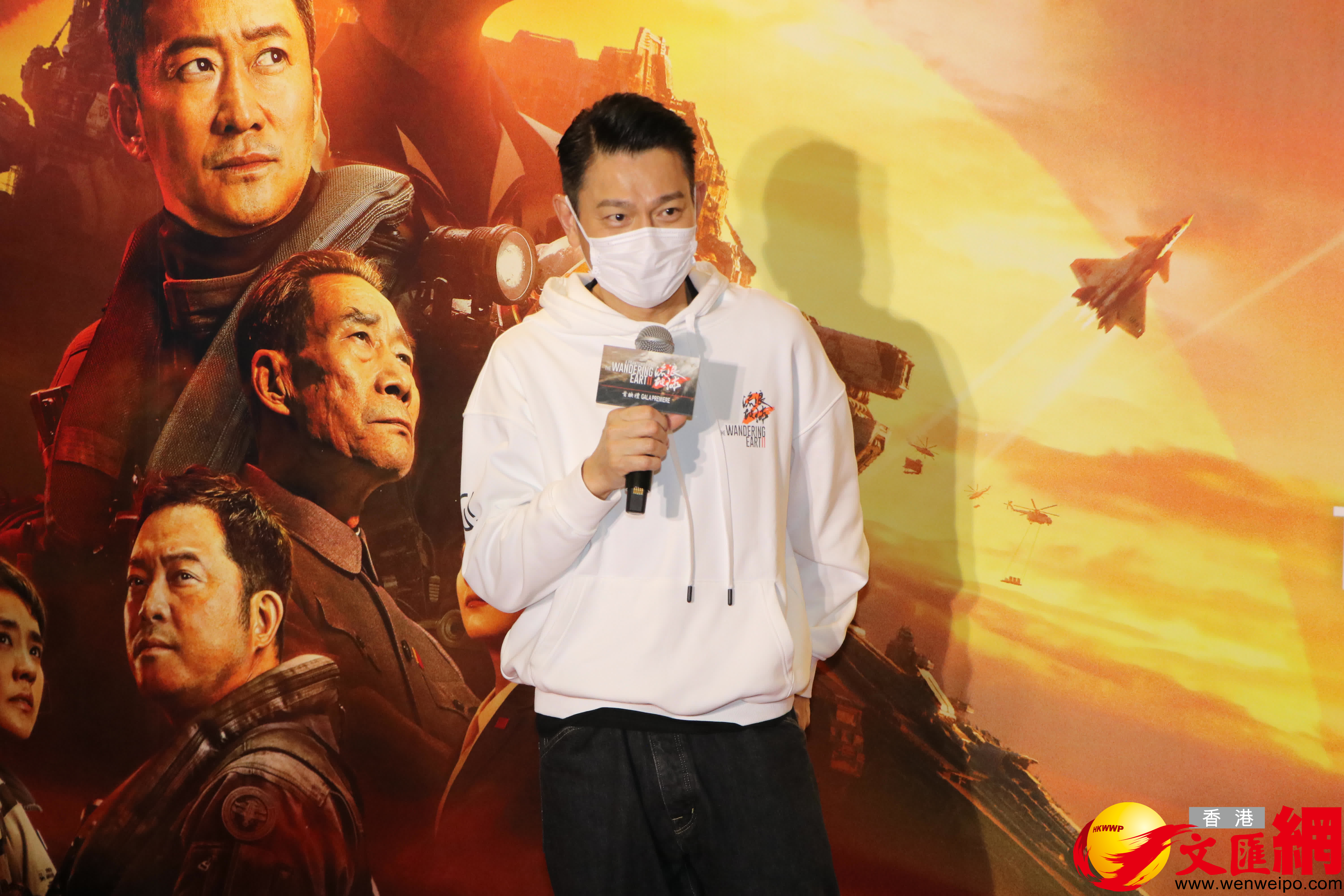 司儀問到他有什麼元素吸引到他加入影片?華仔表示認識了導演郭帆一段時間,亦有看過《流浪地球》第一集,後來跟郭導演飯聚時,對方好想邀請他參演第二集,他看過劇本後亦很想參演,並對劇組的能力很有信心,好想一齊拍科幻片,為香港電影開啟新題材,但自己一直擔心疫情會影響到該片,現在很開心見到內地放寬防疫措施,有很多人入場支持,對票房是一個很大的鼓舞。希望以後電影票房繼續更加逢勃及強勁。