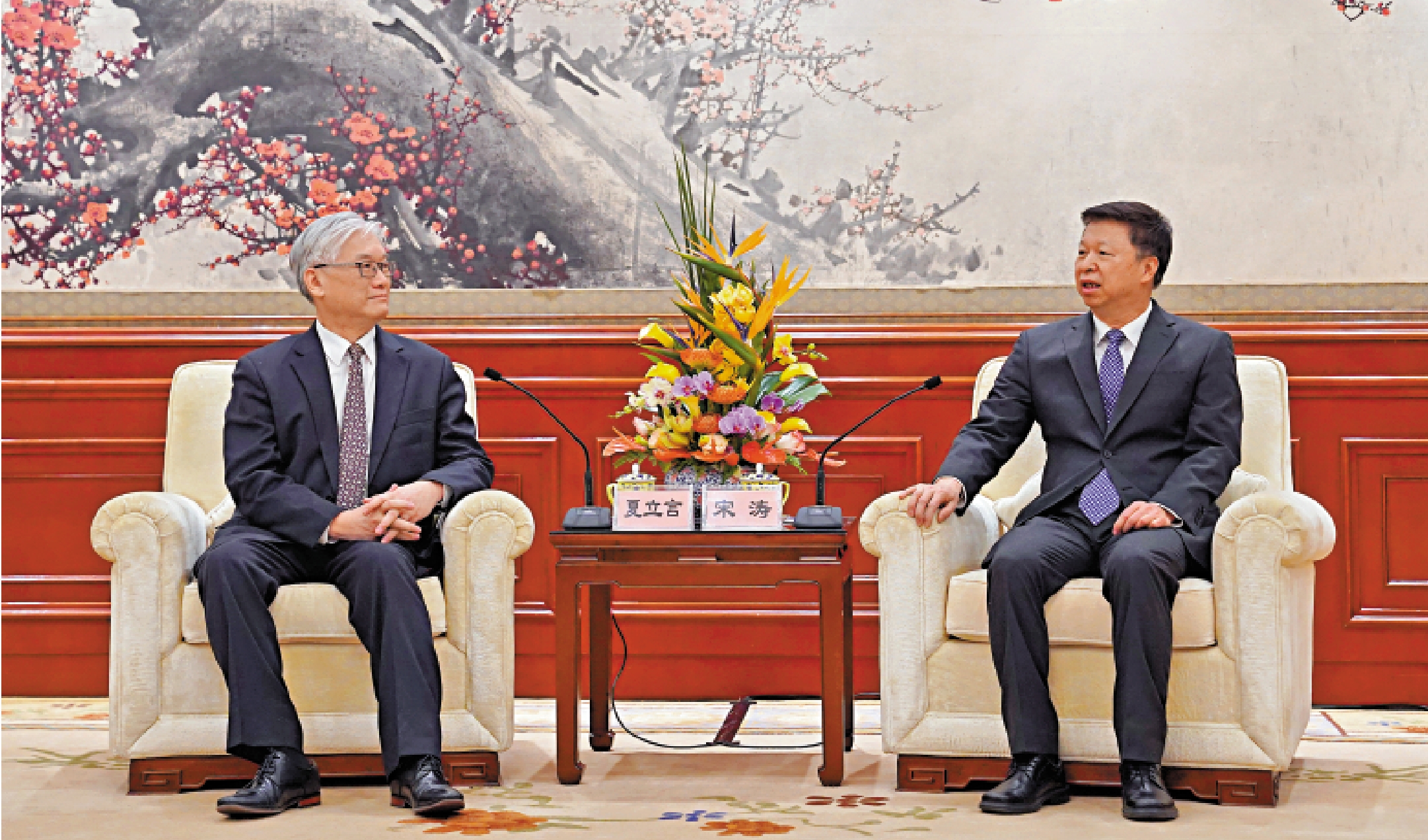 中央台辦、國台辦主任宋濤在北京會見了到訪的夏立言一行。