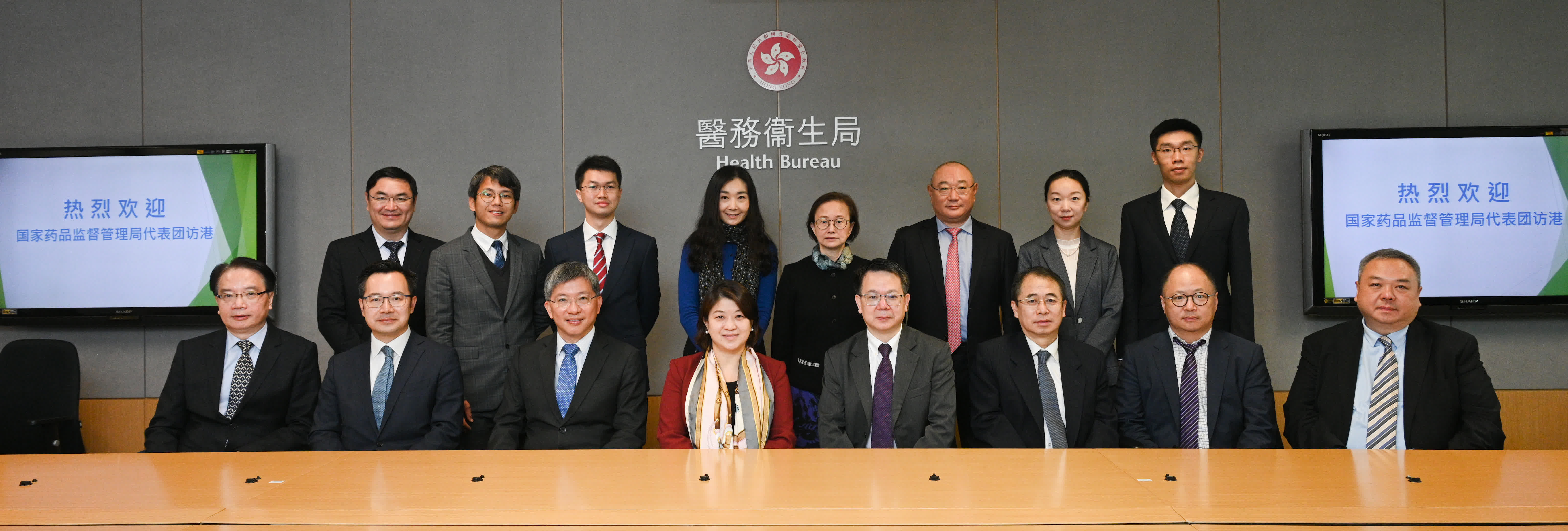大公文匯全媒體報道:署理醫務衞生局局長李夏茵醫生今日(13日)與國家藥品監督管理局(國家藥監局)黨組成員及副局長趙軍寧率領的代表團舉行會議,就進一步推動中藥發展等議題交換意見和討論。醫務衞生局常任秘書長陳松青、副秘書長李力綱、中醫醫院發展計劃辦事處總監張偉麟醫生、中醫藥處處長陳尚敏及衞生署規管事務總監趙佩燕醫生亦有出席會議。