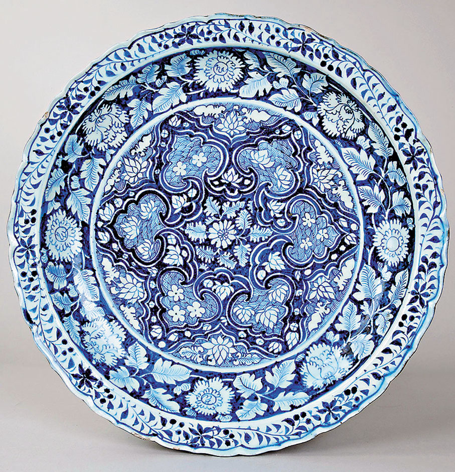 元代之前景德鎮製瓷使用「一元配方」,胎土只用瓷石一種原料,燒成溫度較低。元朝因外貿需要製造大件瓷器,於是將「一元配方」改良為「二元配方」,在瓷土裏加入高嶺土,便能夠燒製更大的器物而不變形。展品中一件元代景德鎮產青花瓷盤,就是以這樣的配方燒製。中、西亞人盛載食物,多用大盤,蒙古人亦如是。這樣的大盤在元代開始盛行,以滿足本國和外銷市場。