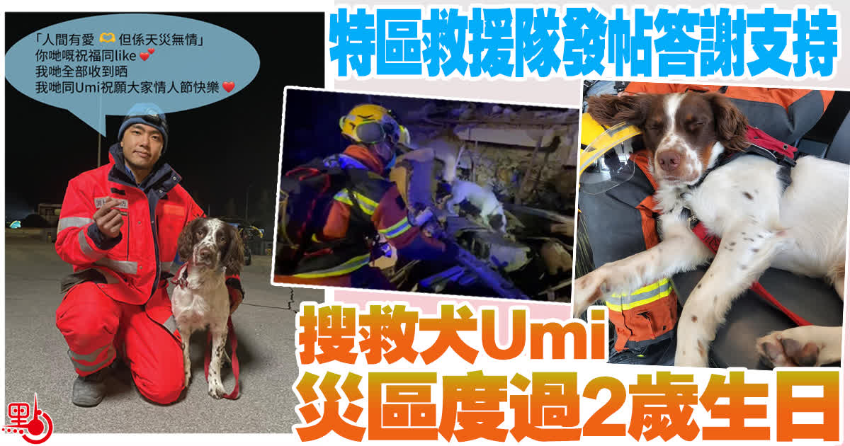 大公文匯全媒體報道:遠赴土耳其協助救援的香港特區政府救援隊,至今已在地震現場救出4名生還者,全城為之振奮!消防處昨日(14日)趁情人節特意在其社交平台專頁發帖文,以答謝市民支持,領犬員與Umi大派「心心」,表示體會到「人間有愛,天災無情。你哋嘅祝福同like,我哋全部收到晒」,特區救援隊會不辭勞苦,繼續救援工作。不少市民留言為救援隊加油,祝願順利,並平安歸來。