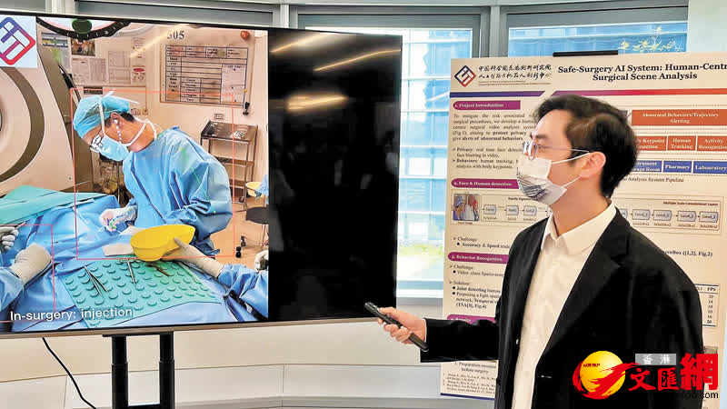 來自中科院香港AIR中心的博士後研究員吳錦林,和香港文匯報記者分享研究項目「Safe-Surgery AI System」(智能手術安全系統):「它主要有兩部分,一個是針對手術用器材,另一個則是監察手術流程。」他介紹說,一個長時間的手術,環節可以多達幾百個,假如要一一確保每個環節正確無誤,對醫護人員大腦的負擔其實很重。
