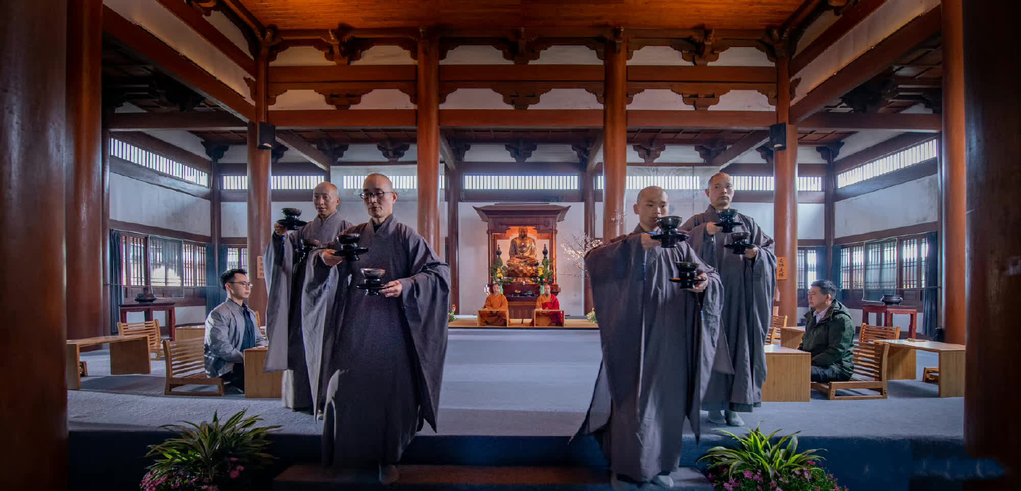 據徑山茶宴項目省級代表性傳承人戒興介紹,在中國宋代,茶宴已融入僧堂生活和禪院清規。徑山的茶禮儀規,就是為當時寺院常住的上千位禪僧的修行生活服務的,通過茶破除坐禪的昏寐,通過茶禮的儀軌形式,讓參與其中的人進入參禪修行的情境中。