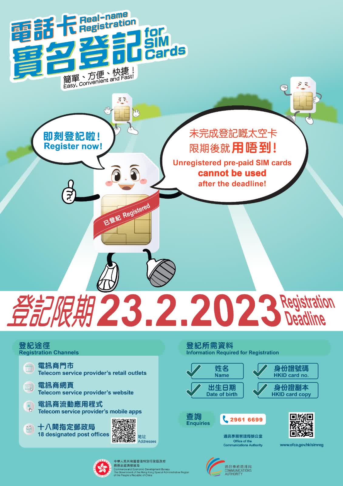 大公文匯全媒體報道:由2月23日(周四)起,未完成實名登記的「太空卡」將不能繼續使用。通訊事務管理局辦公室通訊事務總監梁仲賢今日(21日)表示,已有1200萬張月費卡或電話儲值卡完成登記,估計尚有一批用於備用或提供額外數據流量等用途的電話卡未完成登記。