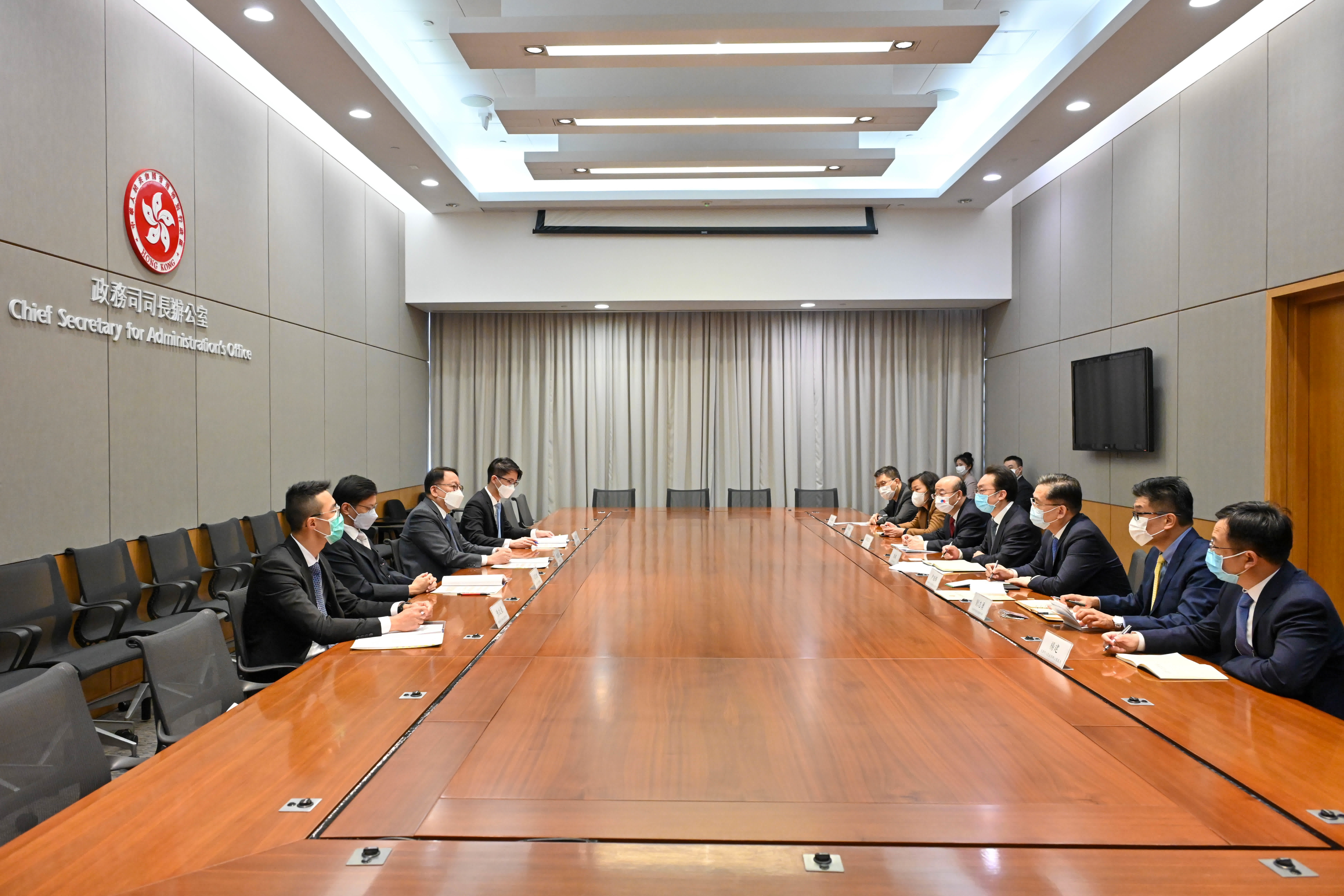 大公文匯全媒體報道:政務司司長陳國基今日(21日)與天津市副市長朱鵬會面,就進一步加強香港與天津合作交換意見。陳國基殷切期盼香港與天津深化經貿、金融、人文、教育等不同範疇的交流合作,加強優勢互補、互利共贏。