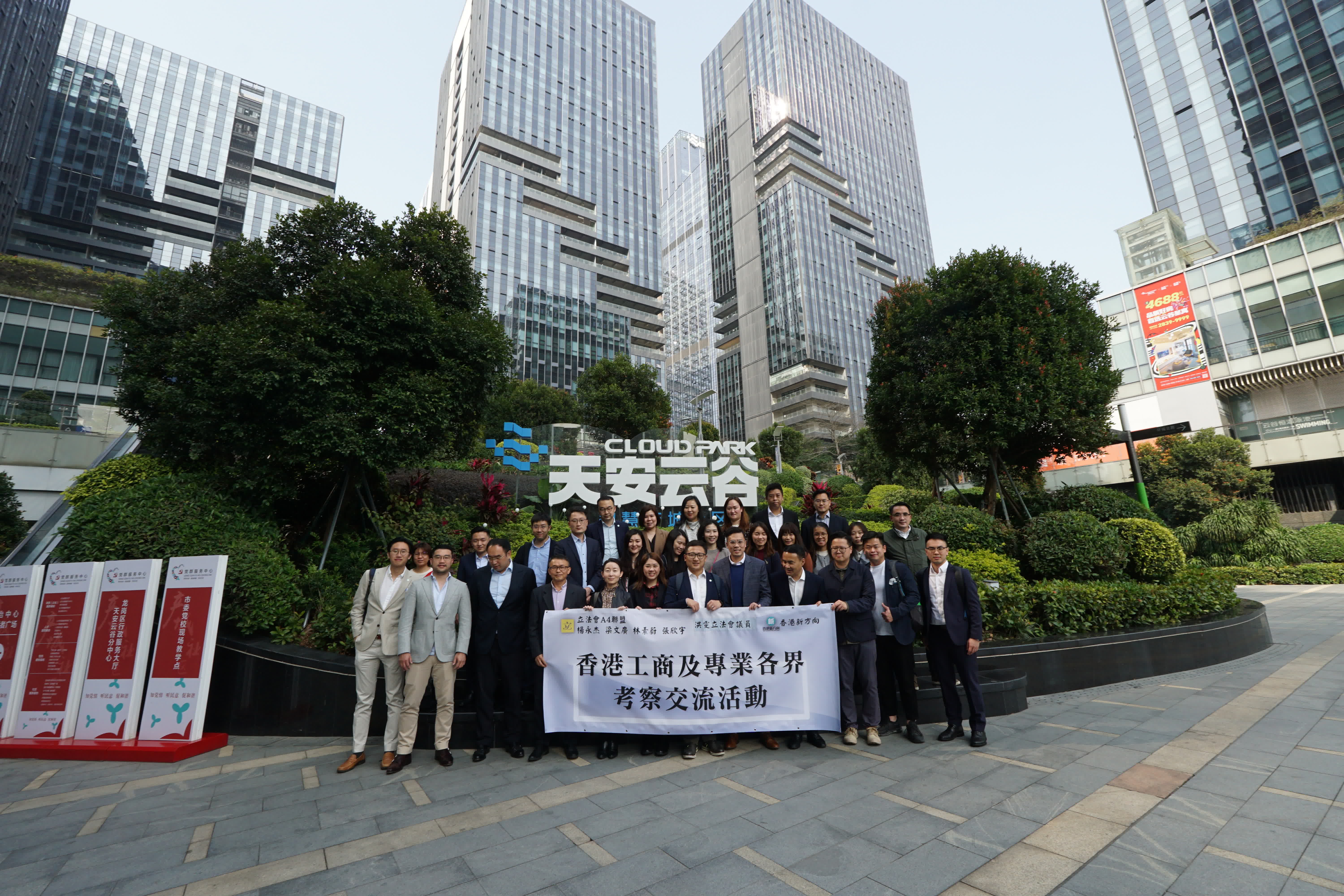 大公文匯全媒體報道:立法會「A4聯盟」議員張欣宇、林素蔚、梁文廣聯同立法會議員洪雯今日(21日)組織金融、創科、工商等專業人士赴深圳龍崗進行考察交流活動。