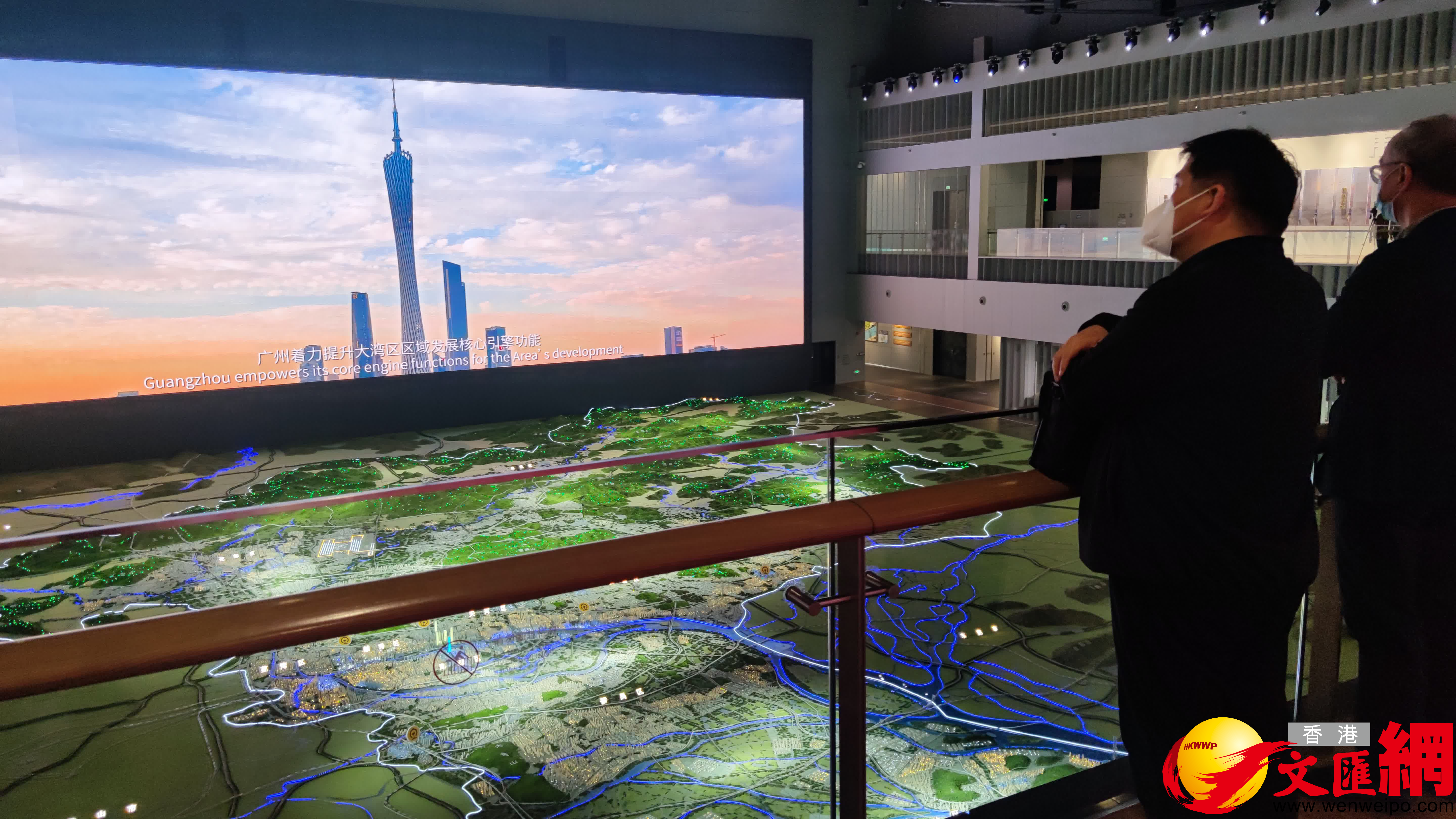 走進廣州城市規劃展覽中心,參訪團首先被大型LED屏幕與「透光混凝土牆」聯動播放的影片《廣州·生長的天際線》所吸引。這是一個規劃與國土綜合展示、城市文化展示的平台,兼具科普、政民互動等功能,觀眾在這裏零距離感受廣州作為國家中心城市的城市格局和未來發展的雄偉藍圖。