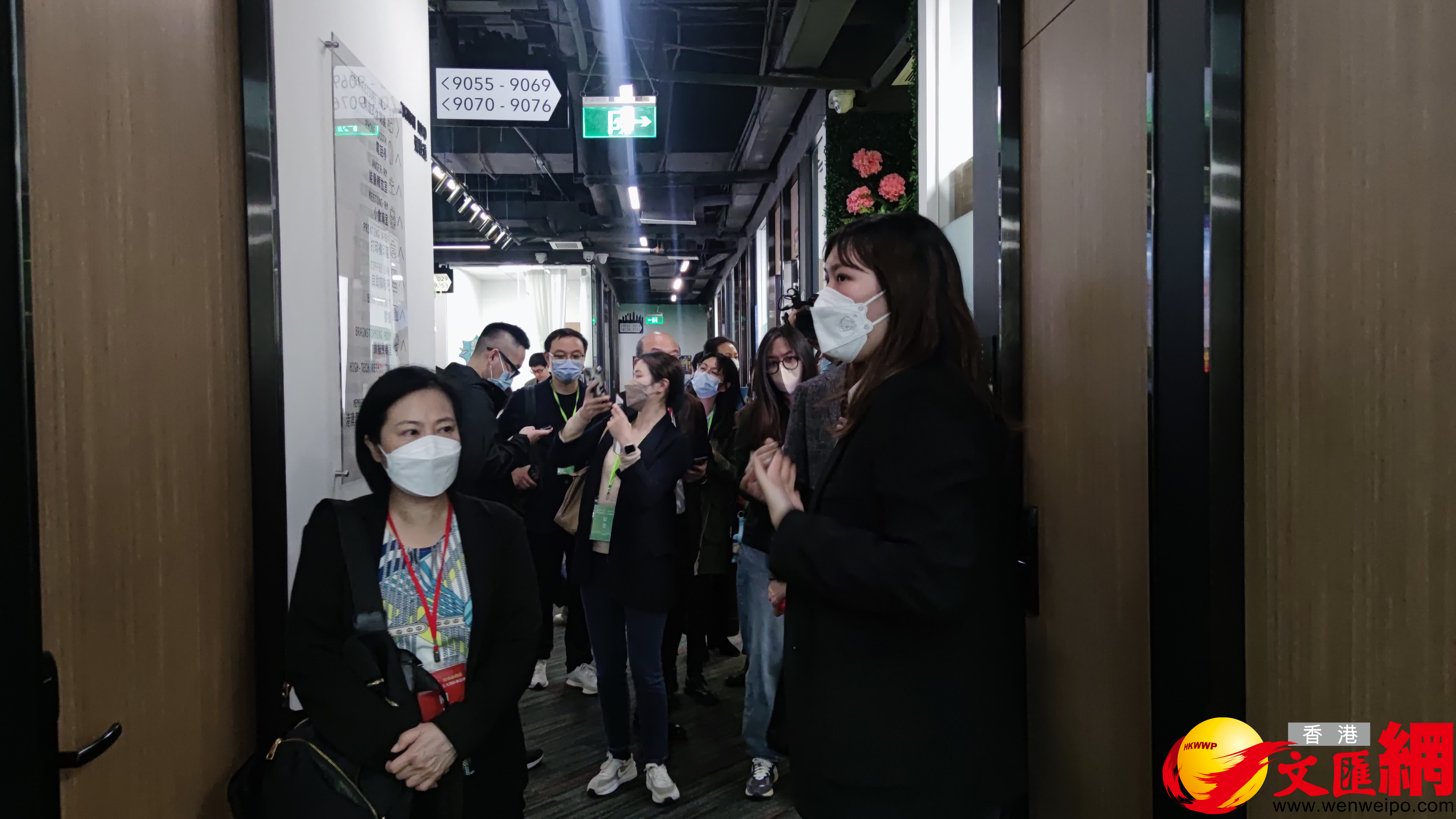(香港文匯網記者 盧靜怡 廣州報道)23日下午,香港傳媒高層人士大灣區參訪團來到廣州市天河區港澳青年之家總部創業基地參觀考察。天河區港澳青年之家裝修風格簡潔明快,透明玻璃間隔出一個個辦公區,從咖啡廳、會議室到頭腦風暴室、冥想室等,一應俱全。參訪團在寫有「彌敦道」等頗具港澳特色的標識牌指引下,走進一個個港澳青年的辦公空間,仔細了解在此落地的香港創業項目。