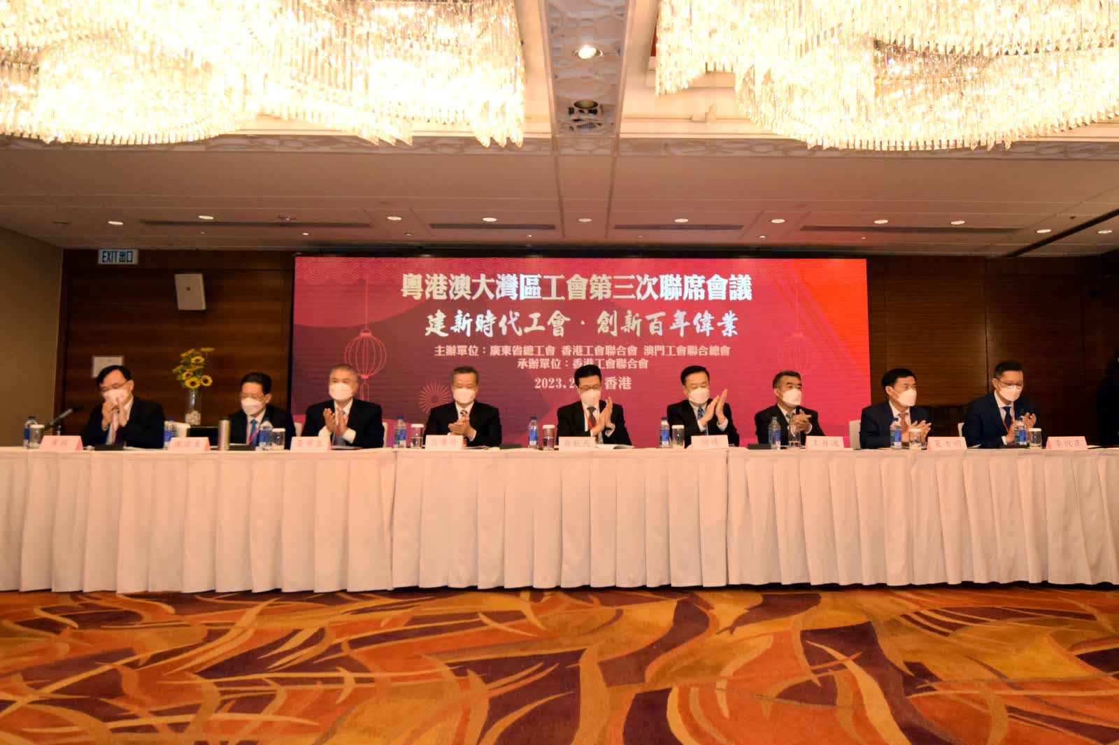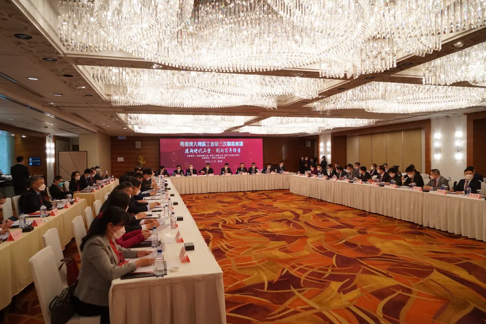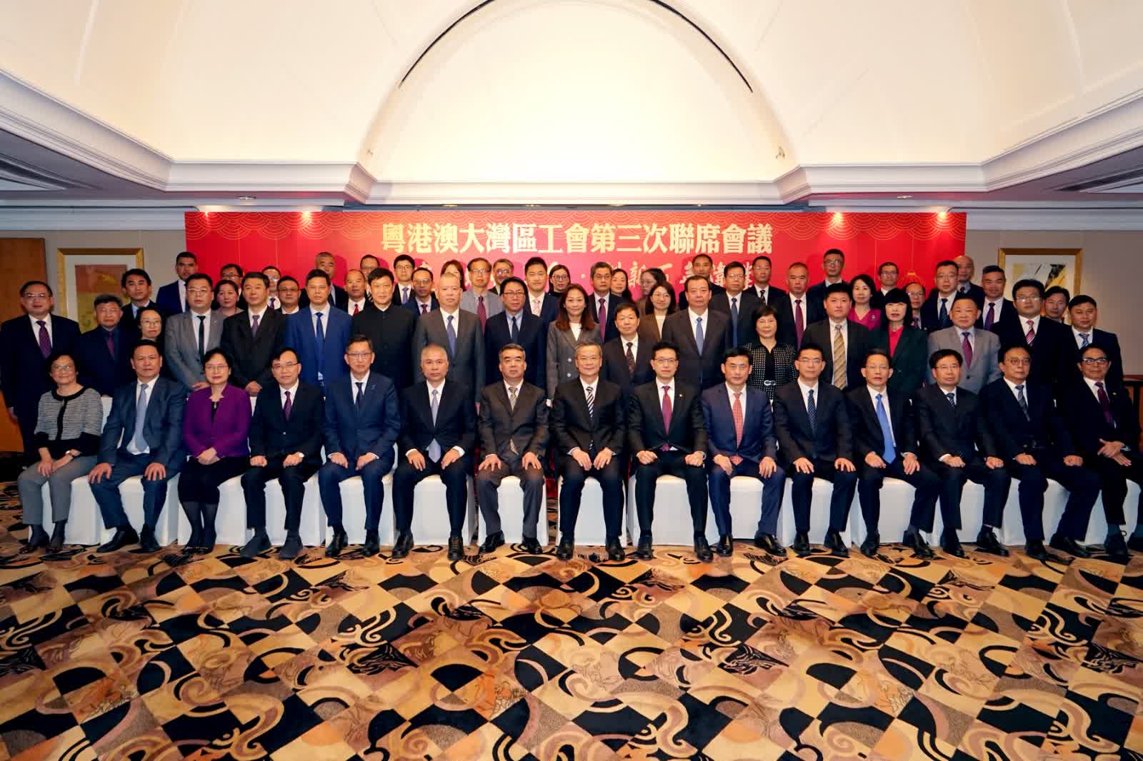 大公文匯全媒體報道:由香港工會聯合會(香港工聯會)輪值主辦的「粵港澳大灣區工會第三次聯席會議」今日(23日)在香港召開,會議主題為「建新時代工會 創新百年偉業」,共商工會深度合作,推進職工素質提升,為推動構建粵港澳大灣區高質量發展,實現中華民族偉大復興貢獻工會力量。全國總工會和粵港澳三地工會共有60多名主要代表出席。