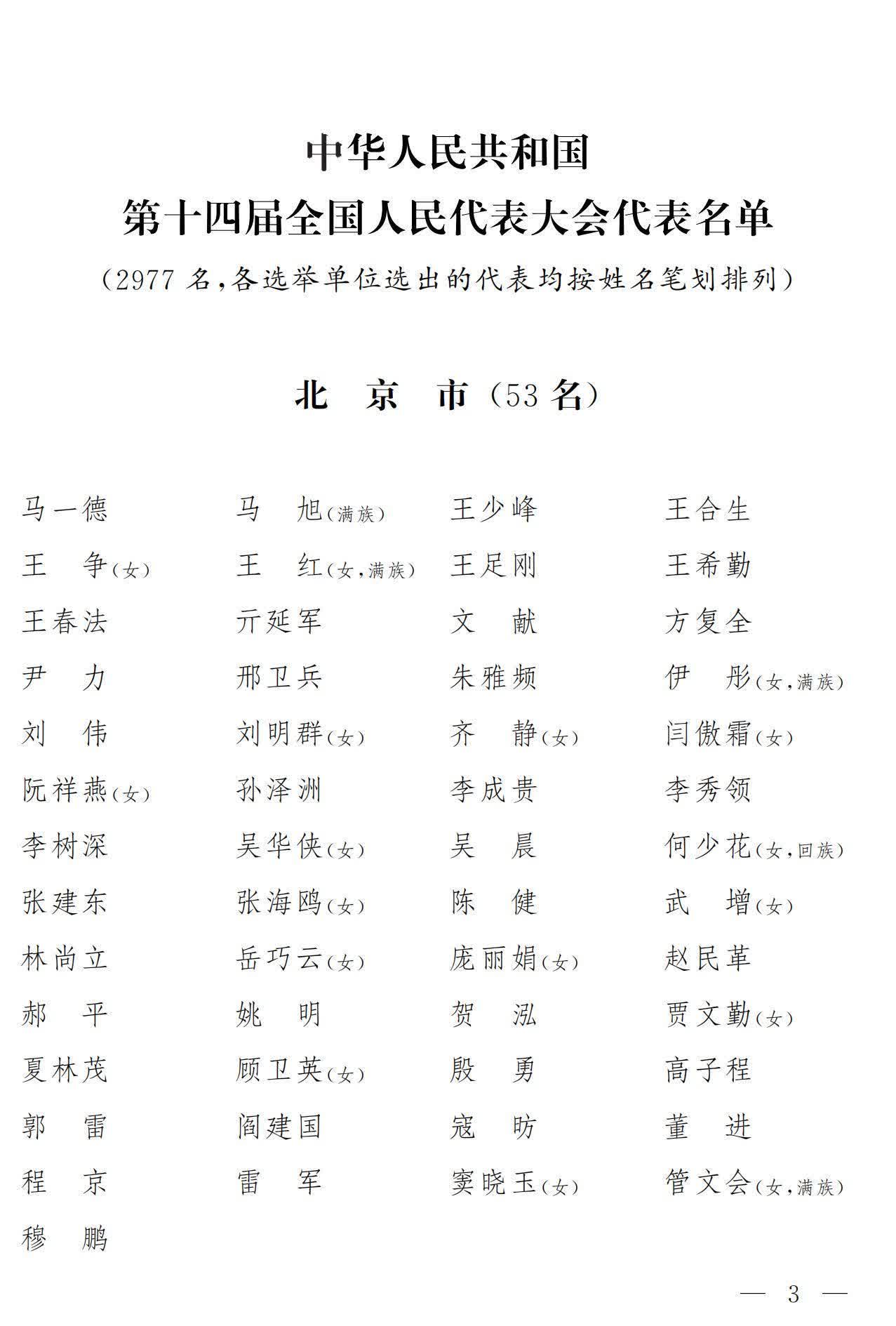 中國人大網今日(2月24日)公布《中華人民共和國第十四屆全國人民代表大會代表名單》,新一屆全國人大代表共有2977名。當中,香港特別行政區共有36名全國人大代表。總體來看,十四屆全國人大代表具有廣泛的代表性,保證了各地區、各民族、各方面都有適當數量代表的要求。