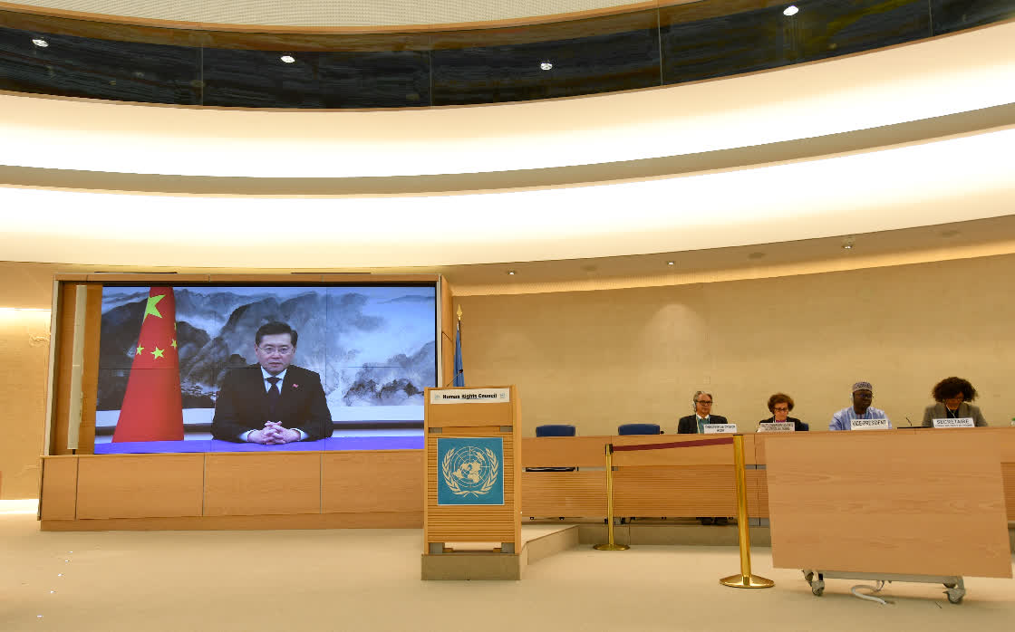 秦剛在致辭中說,任何國家都沒有資格當人權「判官」,人權不能成為干涉別國內政、遏制別國發展的藉口。各國應共同反對有的國家將人權問題政治化、武器化、工具化,反對有的國家無視並無力解決本國國內存在的嚴重人權問題,卻到處充當人權「教師爺」,對別國指手畫腳。