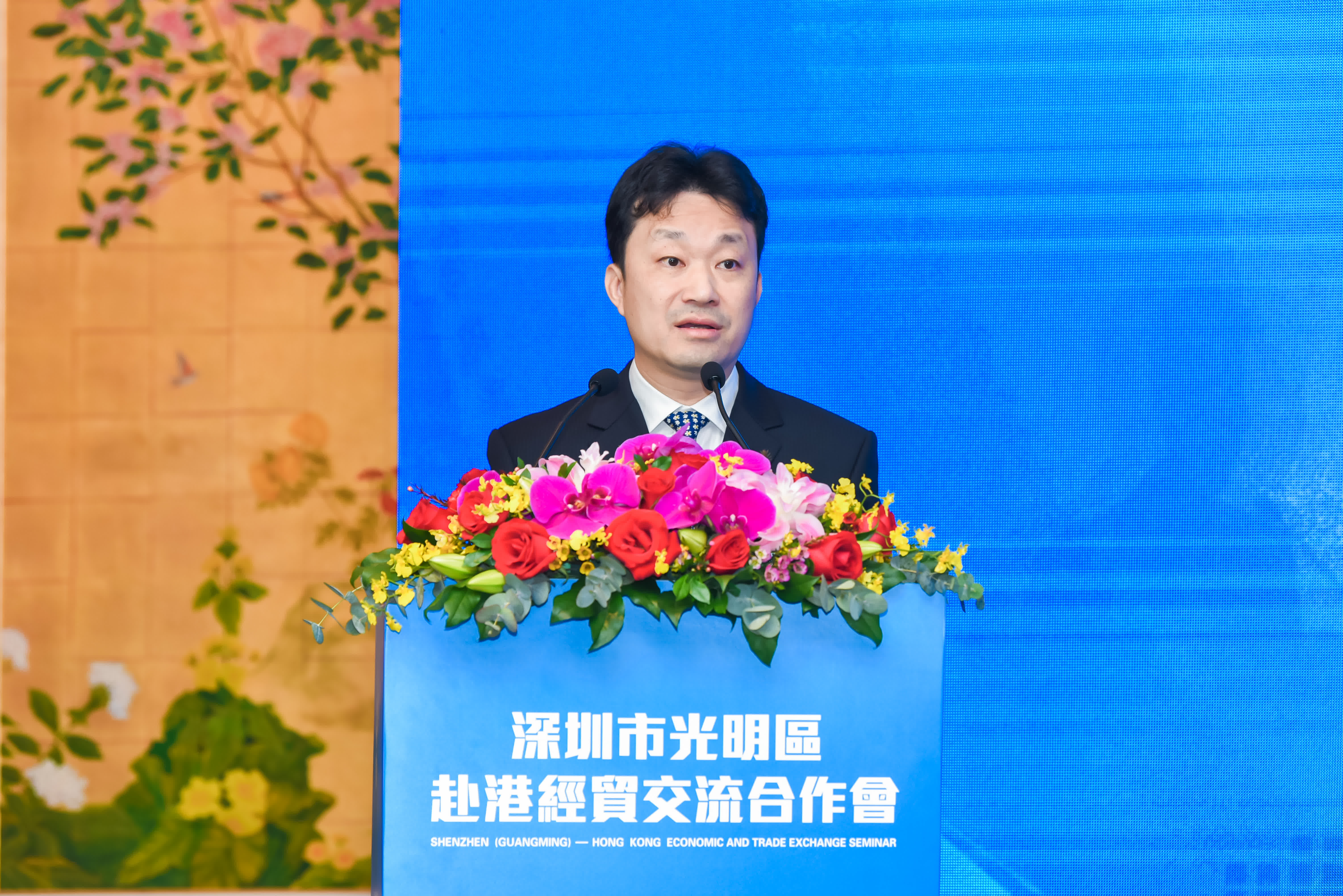 邱浩航全程以粵語推薦,與港合作的誠意滿滿。他指,「早在上世紀50年代,光明同香港就已經好Friend」,目前在光明發展的港資企業有897間,光明會努力提供營造更加優質的環境,支持香港同海內外企業家到光明交流合作。