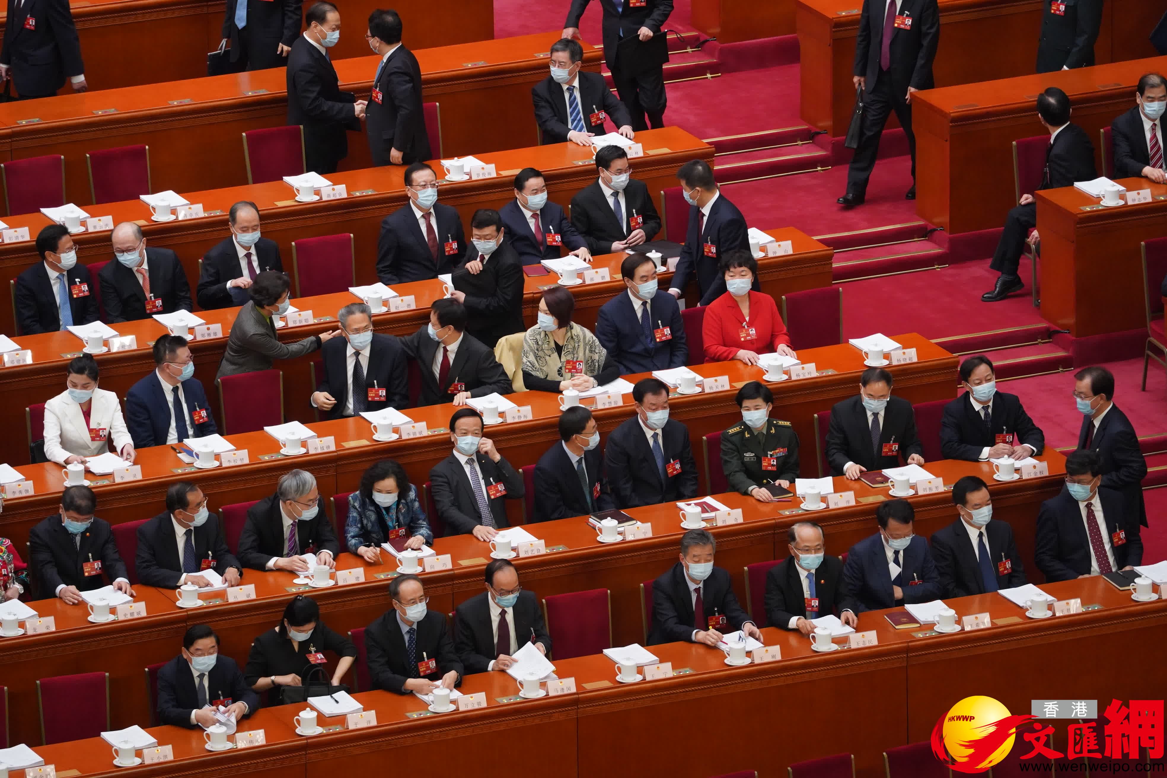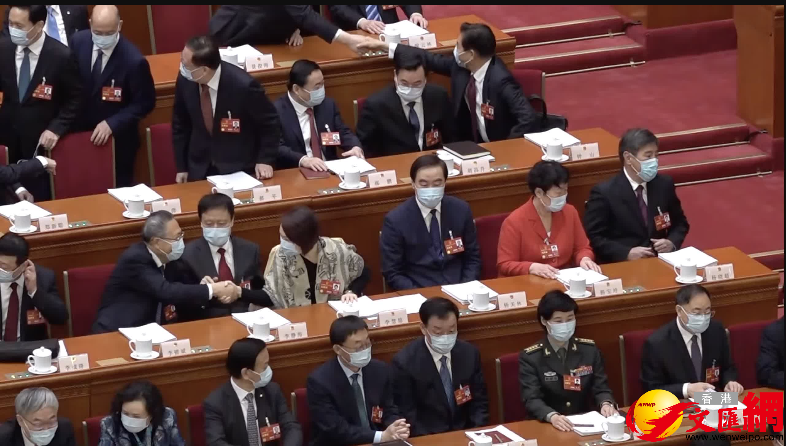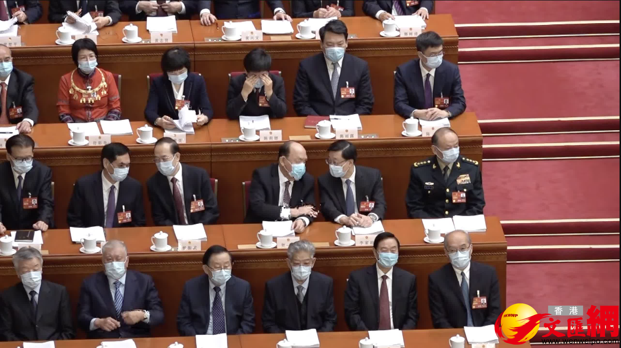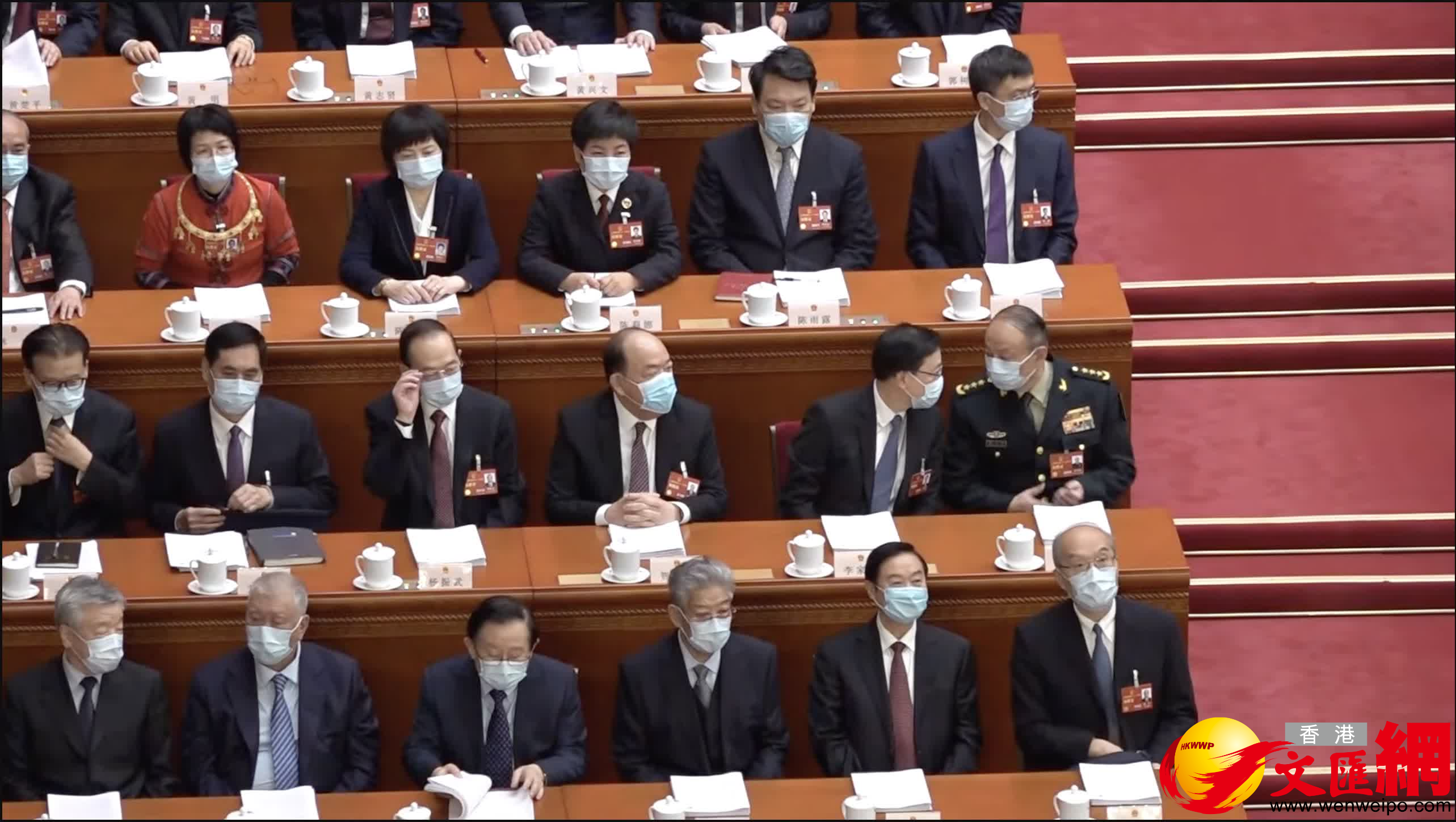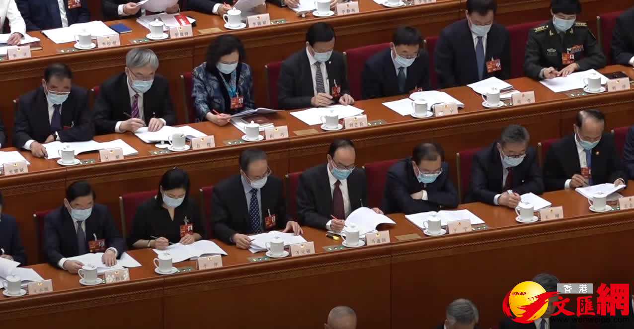 入列十四屆全國人大一次會議主席團的港區人大代表馬逢國和李慧琼,亦在主席台上就坐。