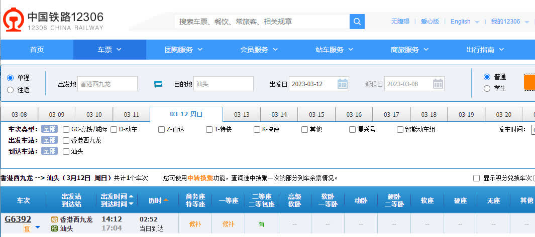 大公文匯全媒體報道:高鐵香港段原定將於本周六(11日)起恢復往汕頭、潮汕等14個長途站點的列車服務,並於昨日(7日)開始售票。惟有市民發現西九龍站往汕頭最早要到周日(12日)才有車次。港鐵其後確認,由於內地車務調動,往返汕頭的高鐵列車服務會延至周日起恢復。