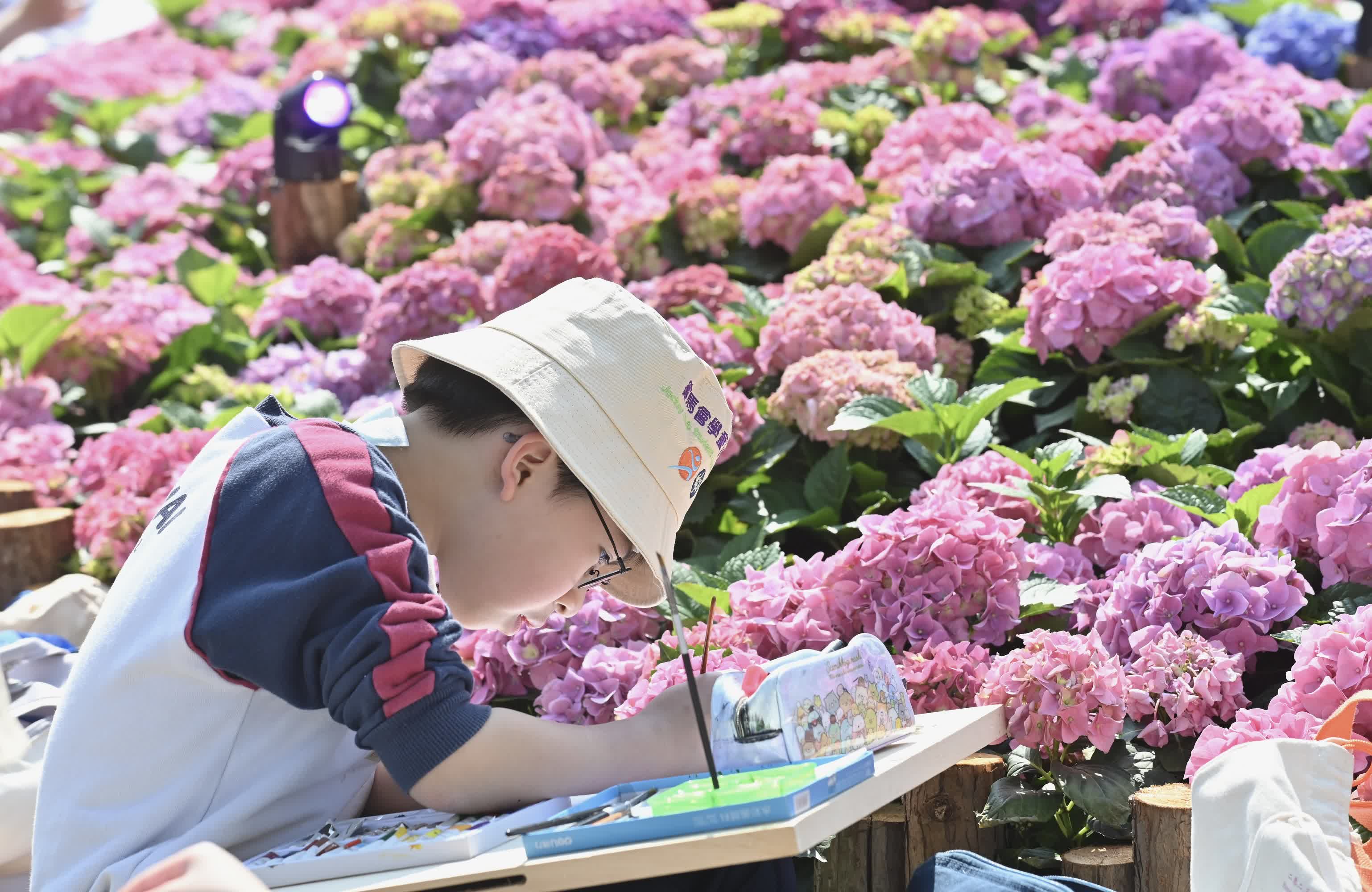 同日舉行的賽馬會學童繪畫比賽吸引了約1600名學生參與,他們聚精會神地繪畫眼中的花展。不少市民亦紛紛在大型鑲嵌花壇、繡球花立體花牆和花圃、鬱金香和毛地黃花海拍照留念,氣氛熱鬧。