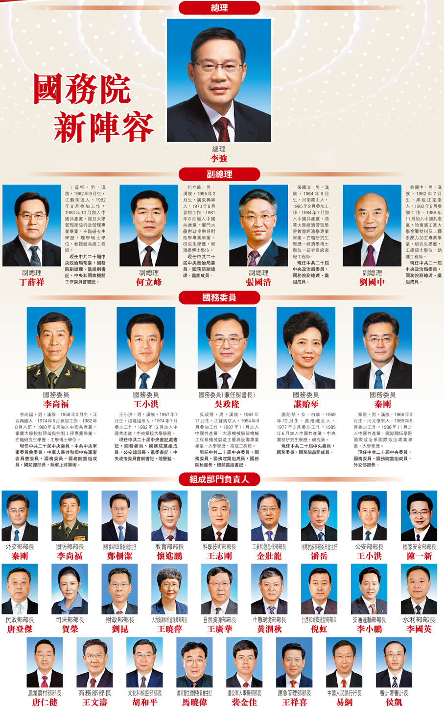 現任中共二十屆中央政治局常委,國務院副總理、黨組副書記,中央和國家機關工作委員會書記。