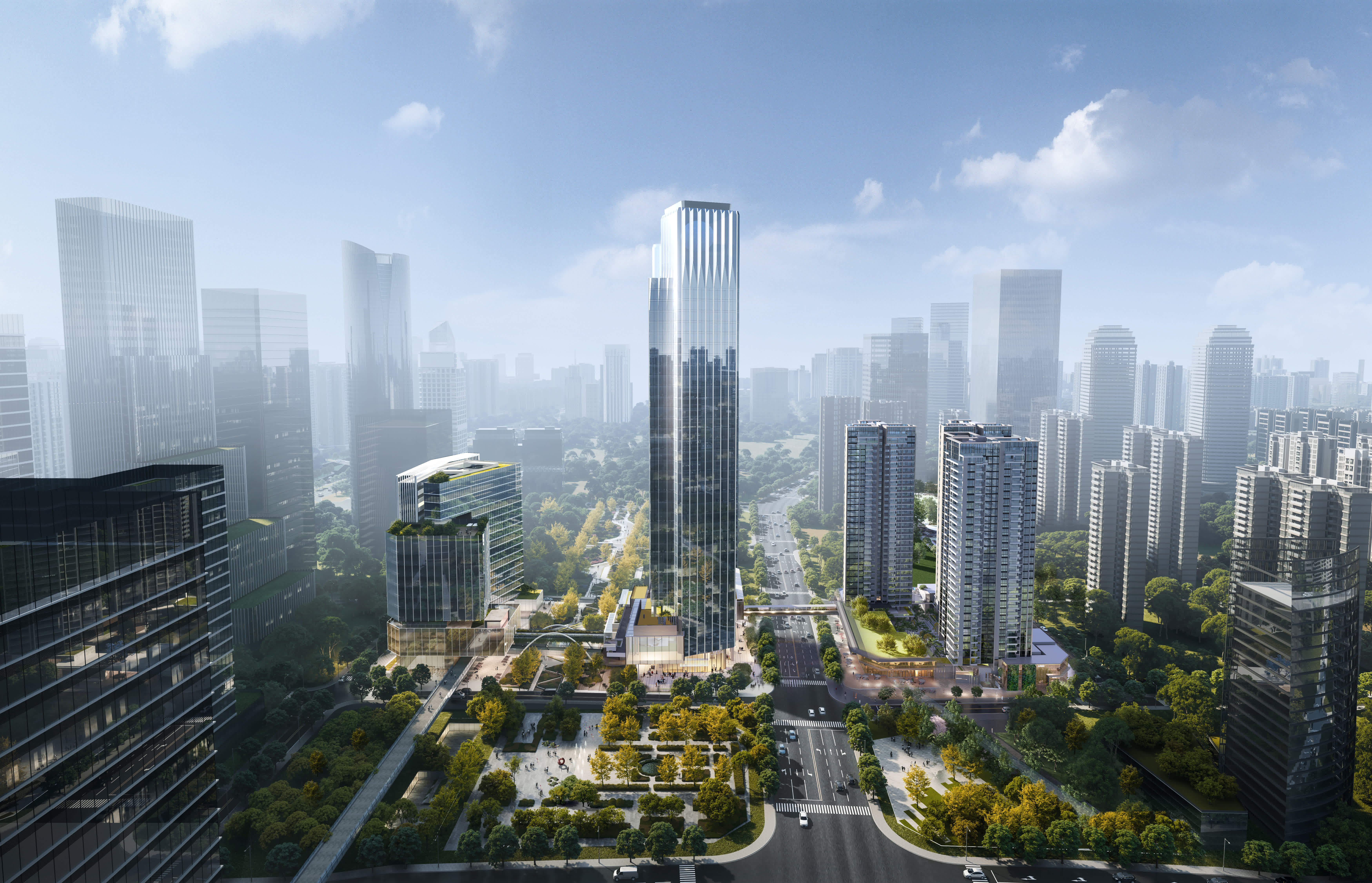 根據規劃,東莞香港中心建築主體由200米主塔、80米副塔和一個住宅區構成,總建築面積約23萬㎡。其定位為港商聚集樞紐、大灣區港商發展中心、大灣區港企總部中心,將全力打造成為莞港兩地互為發展的窗口,協助東莞企業與國際接軌。