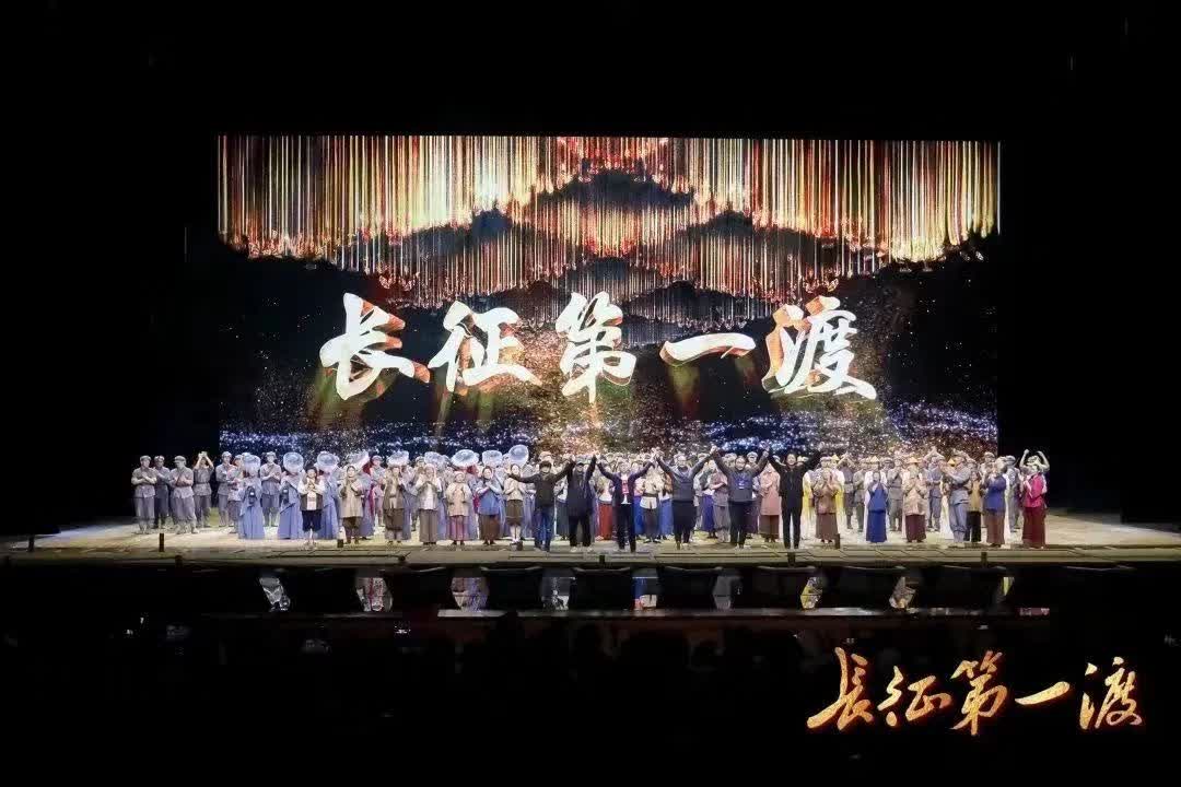 《長征第一渡》深入挖掘長征背後的故事,以傳承和弘揚長征精神為使命,運用兼具故事性和藝術欣賞性的現代影像和精美舞台技術,回望氣壯山河的崢嶸歲月,講述波瀾壯闊的長征故事。總導演肖向榮介紹說,從立項到正式首演,《長征第一渡》歷經三年多的打磨,凝聚了台前幕後眾多工作人員的心血與努力。該劇無論在題材立意、表達形式以及舞台科技方面,做了很多突破性的嘗試,是一部值得每一個中國人看的演出。《長征第一渡》的正式首演,對弘揚長征精神,鼓舞國人走好新時代的「趕考路」意義重大。
