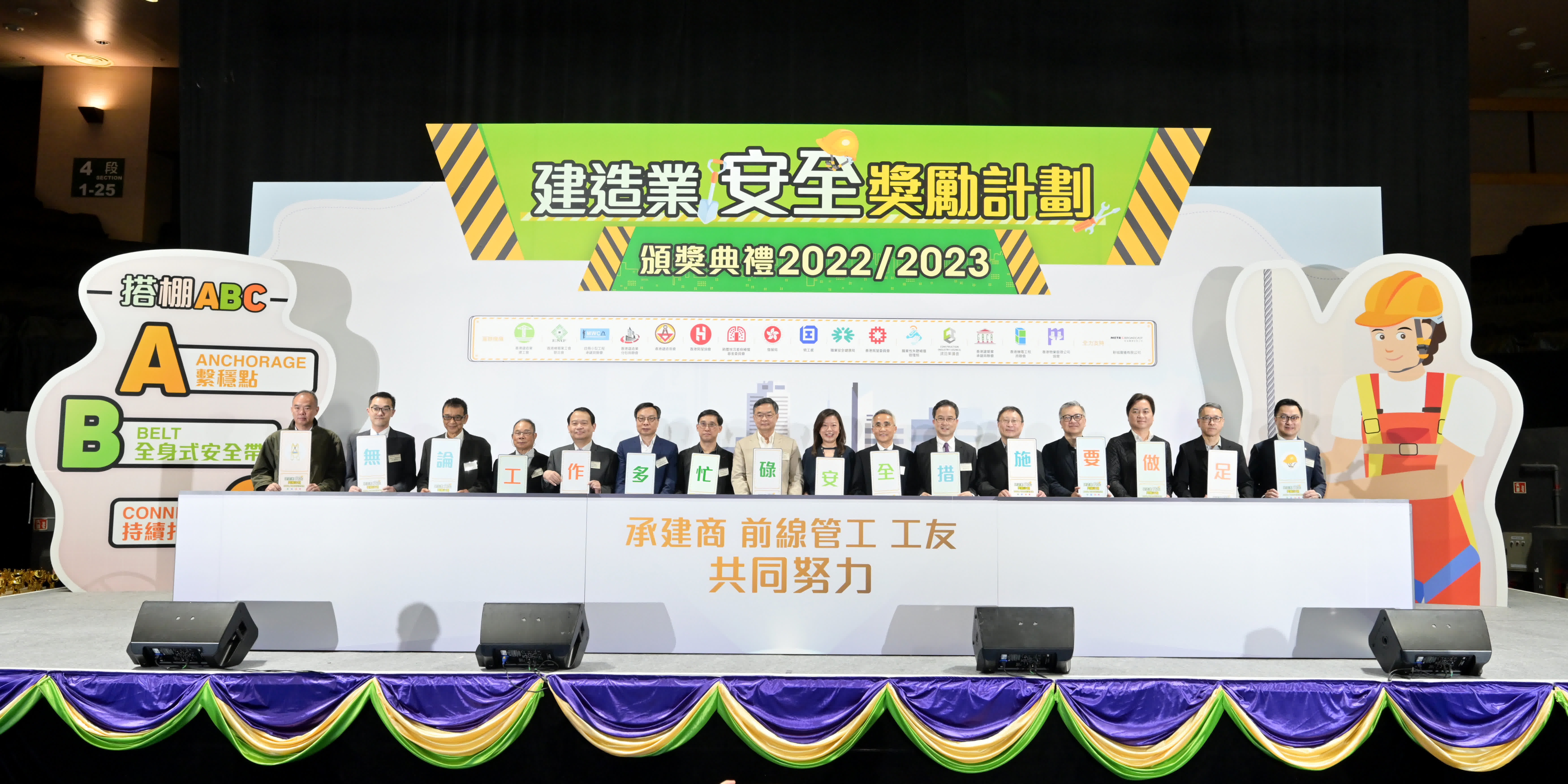 勞工處處長陳穎韶在頒獎典禮上致辭時說,在去年發生的25宗致命工業意外中,有17宗涉及建造業,可見建造業仍是職安健風險最高的行業。勞工處非常重視建造業的職安健水平,去年製作了一系列宣傳短片,向承建商、工友及業戶等不同持份者推廣在進行離地工作及吊棚工程時所需的基本安全措施,提醒業界時刻把安全放在首位。勞工處將繼續加強工地巡查執法、宣傳推廣及教育培訓的工作,積極推廣職安健文化。