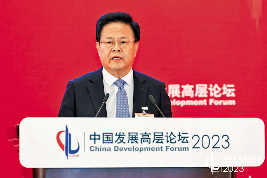 丁薛祥說,習近平主席專門發來賀信,充分體現了對中國發展高層論壇的高度重視。過去一年是中國發展進程中極為重要的一年。在以習近平同志為核心的黨中央堅強領導下,我們沉着應對國內外多重超預期因素衝擊,保持了經濟社會大局穩定。今年是全面貫徹黨的二十大精神的開局之年。我們將堅持穩中求進工作總基調,完整、準確、全面貫徹新發展理念,加快構建新發展格局,着力推動高質量發展,突出做好穩增長、穩就業、穩物價工作,實現經濟質的有效提升和量的合理增長,為全面建設社會主義現代化國家開好局起好步。