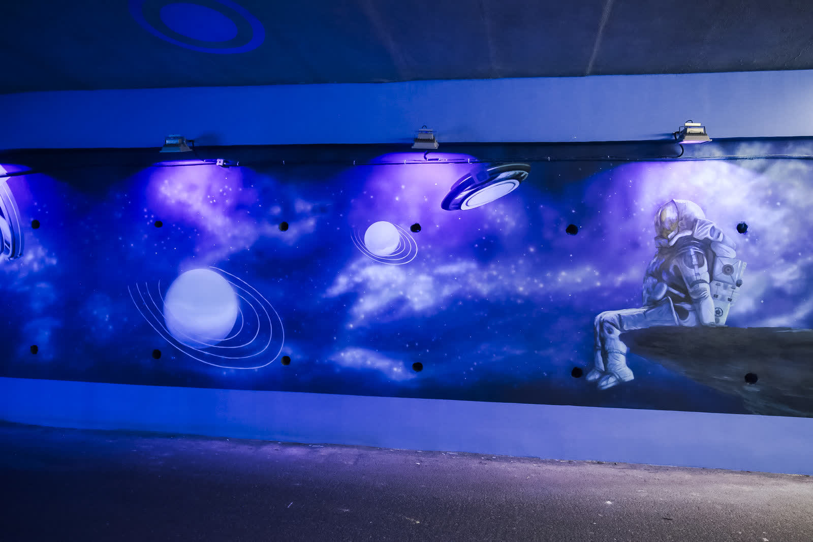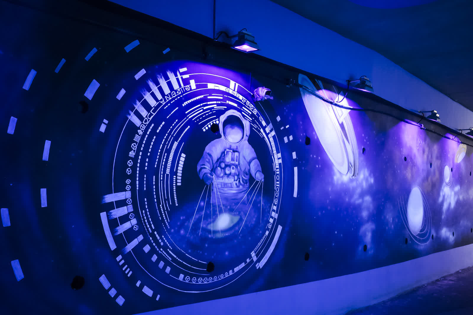 (香港文匯網記者 馬曉芳 北京報道)宇宙球體、太空飛行、數字代碼…北京市朝陽區日前再添一處數智打卡地,京哈鐵路沿線「元宇宙時光隧道」亮相,多重景觀兼具實用性和觀賞性,為市民提供了一個趣味性十足的公共空間。據悉,該「元宇宙時光隧道」前身是一個破舊涵洞,由設計師和塗鴉藝術家聯合改造而成。