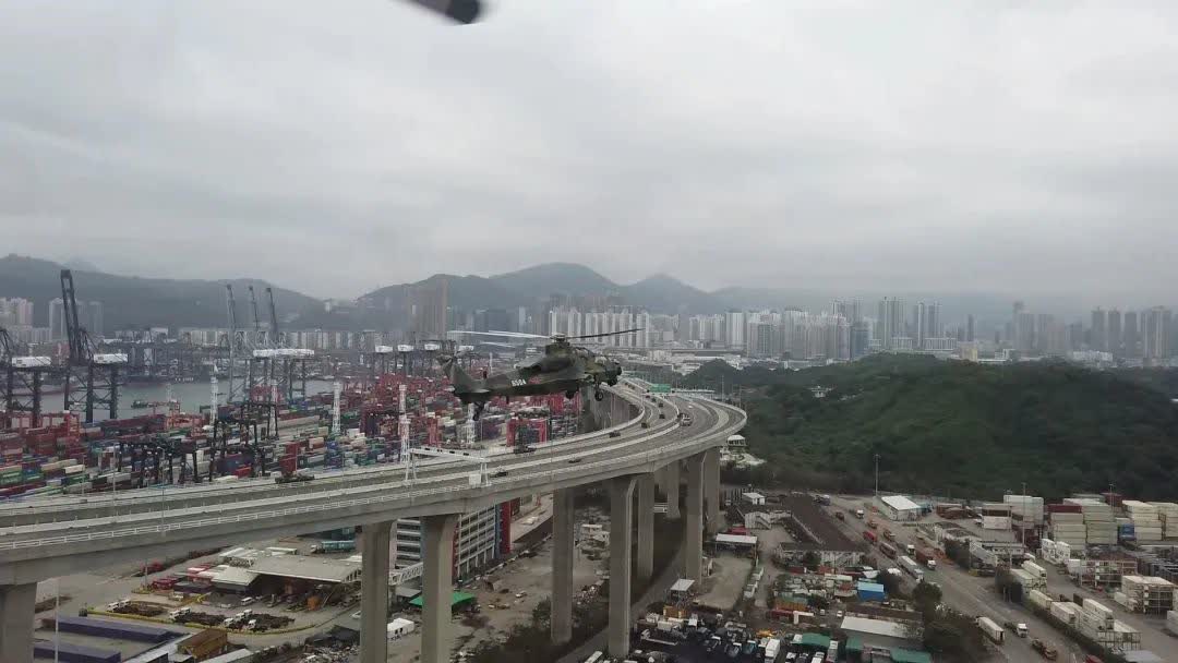 上午11時許,陸上機動梯隊完成緊急出動,編隊從新田軍營出發,繞新界、九龍、港島進行巡邏,並在昂船洲大橋與直升機編隊匯合,開展陸空聯合巡邏。