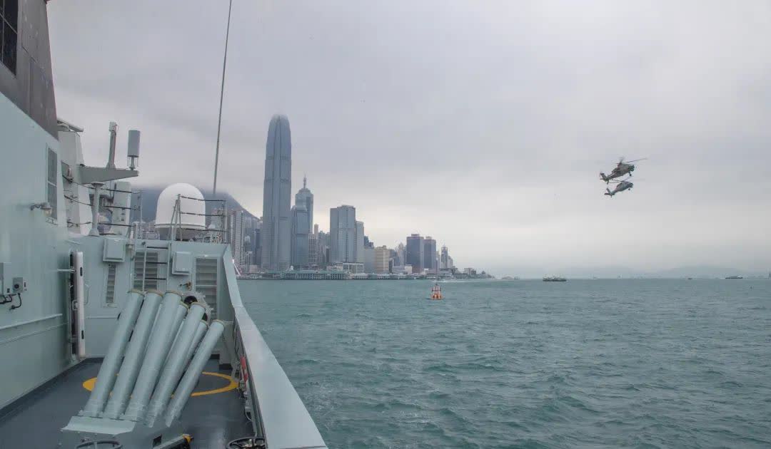 上午9時,昂船洲軍港上空警鈴驟響,接到出動命令後,駐香港部隊海軍艦艇緊急備戰備航,搭載特戰小隊駛離軍港。與此同時,空軍兩架直升機也從石崗營區緊急升空,協同執行此次海空聯合巡邏任務。