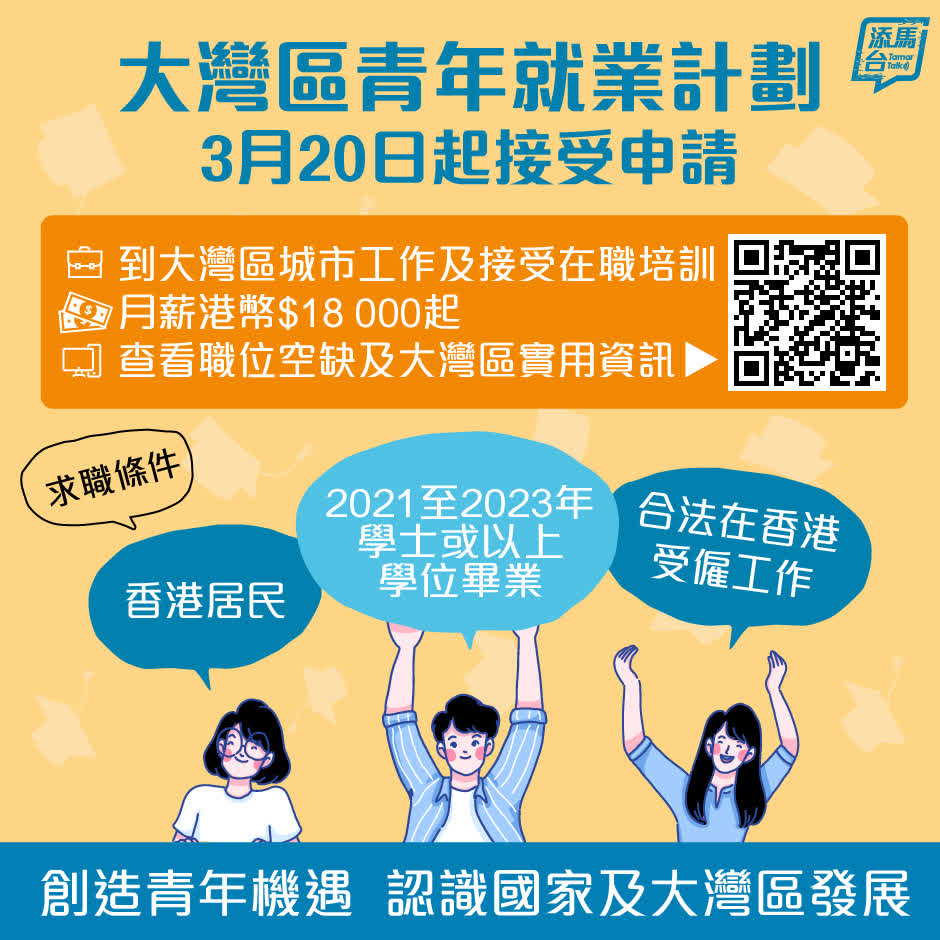 大公文匯全媒體報道:「大灣區青年就業計劃」明日(30日)於會展舉行招聘博覽,2021至2023年學士或以上學位畢業生可即場應徵,或有機會即場接受面試,有興趣合資格畢業生不容錯過!