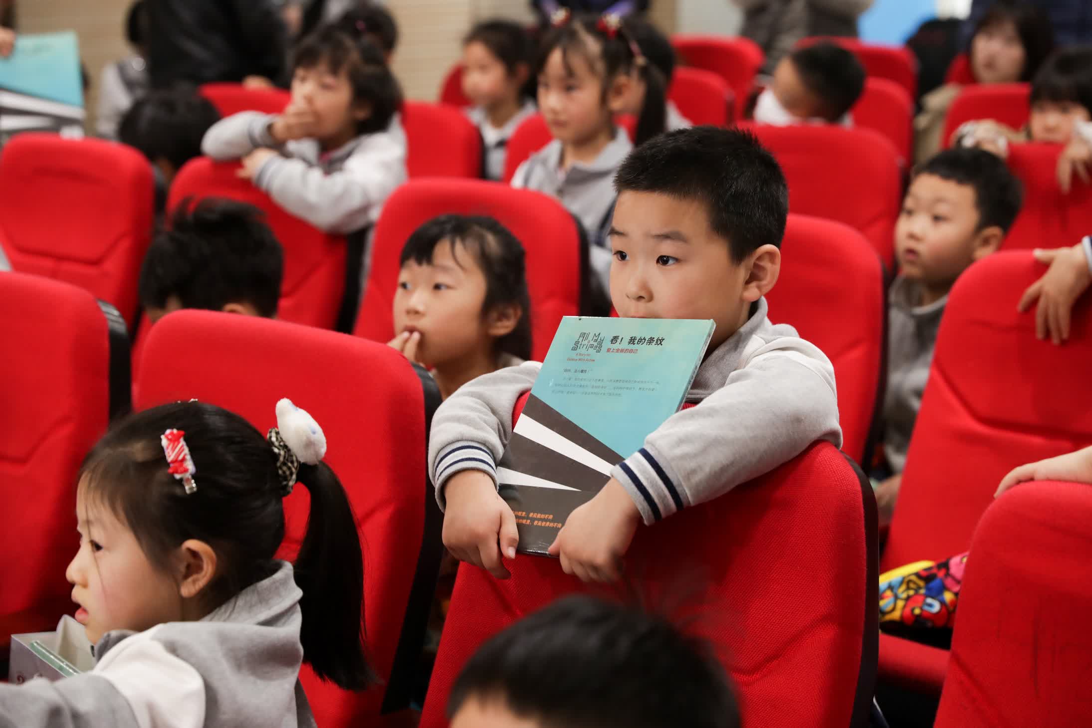 「我有一個孤獨症好朋友,他和我一樣,愛笑愛鬧愛玩耍,是個普通孩子。但他又很特殊,有一些與眾不同的地方。他經常被很多標籤定義,但每個標籤又不能完全代表他。」活動現場,五年級的李佳瑤和四年級的李潤熙動情地講述了「我和我的孤獨症好朋友」的故事。山東省圖書館繪本推廣人郎秀麗,通過繪本《看!我的條紋:愛上全部的自己》,生動形象地為在場的幼兒園小朋友們介紹了孤獨症孩子。孩子們紛紛舉手發言,表示願意跟孤獨症小朋友做好朋友。