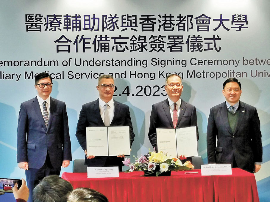 香港文匯報訊 醫療輔助隊與都會大學昨日簽訂合作備忘錄,正式開展連串學術和服務合作,雙方將透過各項教育活動,包括醫療及衞生培訓、服務學習計劃、義工服務、職涯規劃,推動青年多元發展。