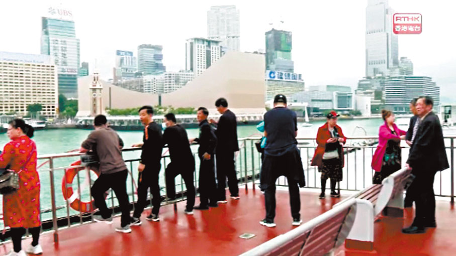 不少旅客用餐後上甲板欣賞維港景色及拍照「打卡」留念。旅客馮小姐表示昨日午膳感覺很不錯,指外面有風景,裏面吃着美餐,「吃飽、吃好,也不限時。」