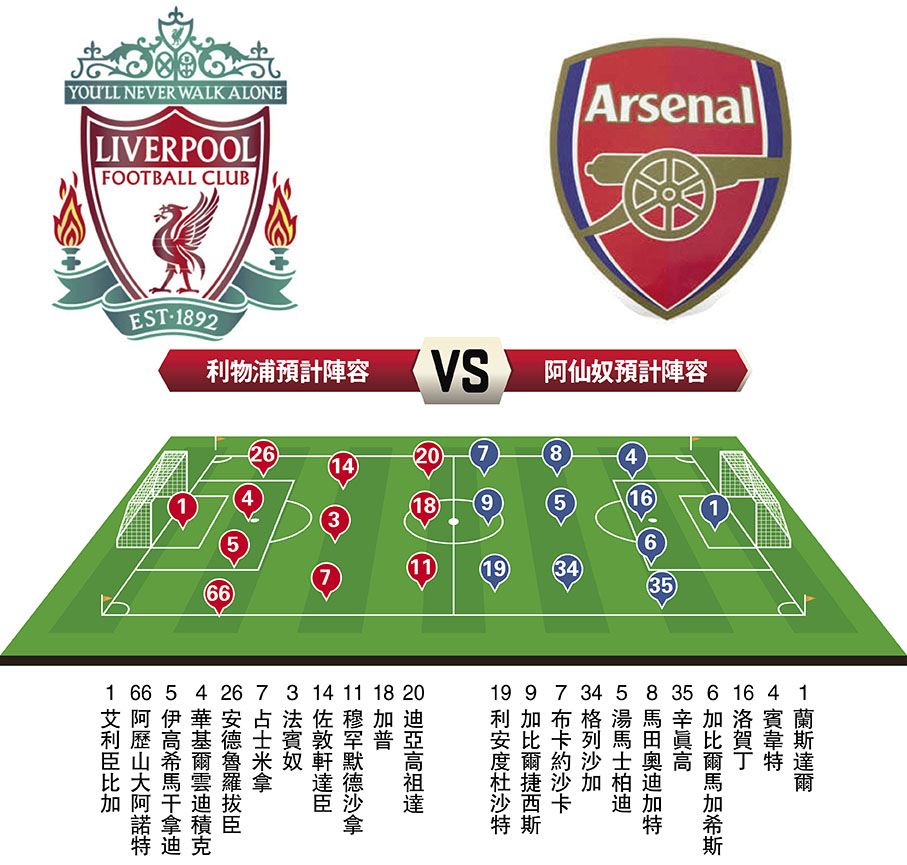 觀乎利物浦對上12個主場對阿仙奴有10場雙方全場總入球都有4個或以上,兩支均是攻強於守的豪門是役再次對撼,勢將合演一場對攻大戰,一眾星級前鋒的把握能力將成為勝負關鍵。