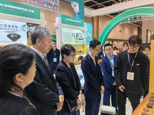 山西展位是本次展會的一大亮點,展位地處場館中心位置,現場巨幅LED電子屏循環播放着具有山西特色的文旅宣傳視頻。同時,山西省文化和旅遊廳此次共選派「八大瑰寶」百餘種相關產品代表山西文旅來到香港:享譽國內外的杏花村汾酒、「四大名硯」之一的絳州澄泥硯、素有「中國最美鐵壺」之稱的澤州鐵器、寓意如意吉祥的太平繡球、入窯一色而出窯萬彩的懷仁窯變釉、可就地取材並變廢為寶的廣靈柳編、以葫蘆做「畫紙」的葫蘆烙刻以及充分展現陶瓷藝術魅力的手繪藝術瓷。展會現場中外觀展人員眾多,紛紛駐足山西展位熱情地和參展商交流互動,了解學習山西省獨特文旅產品。