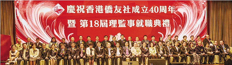香港僑友社日前假龍堡國際賓館胡應湘堂舉辦「成立40周年暨第十八屆理監事會就職典禮」。僑友社會長王錦輝,主席黃英來、王欽賢聯同中聯辦協調部副部長陳澤濤,中國僑聯副主席、香港僑界社團聯會首席主席余國春,全國政協委員、香港僑界社團聯會會長黃楚基,廣州市統戰部副部長、僑辦主任江帆,深圳市統戰部副部長劉昕等出席主禮,場面熱鬧。