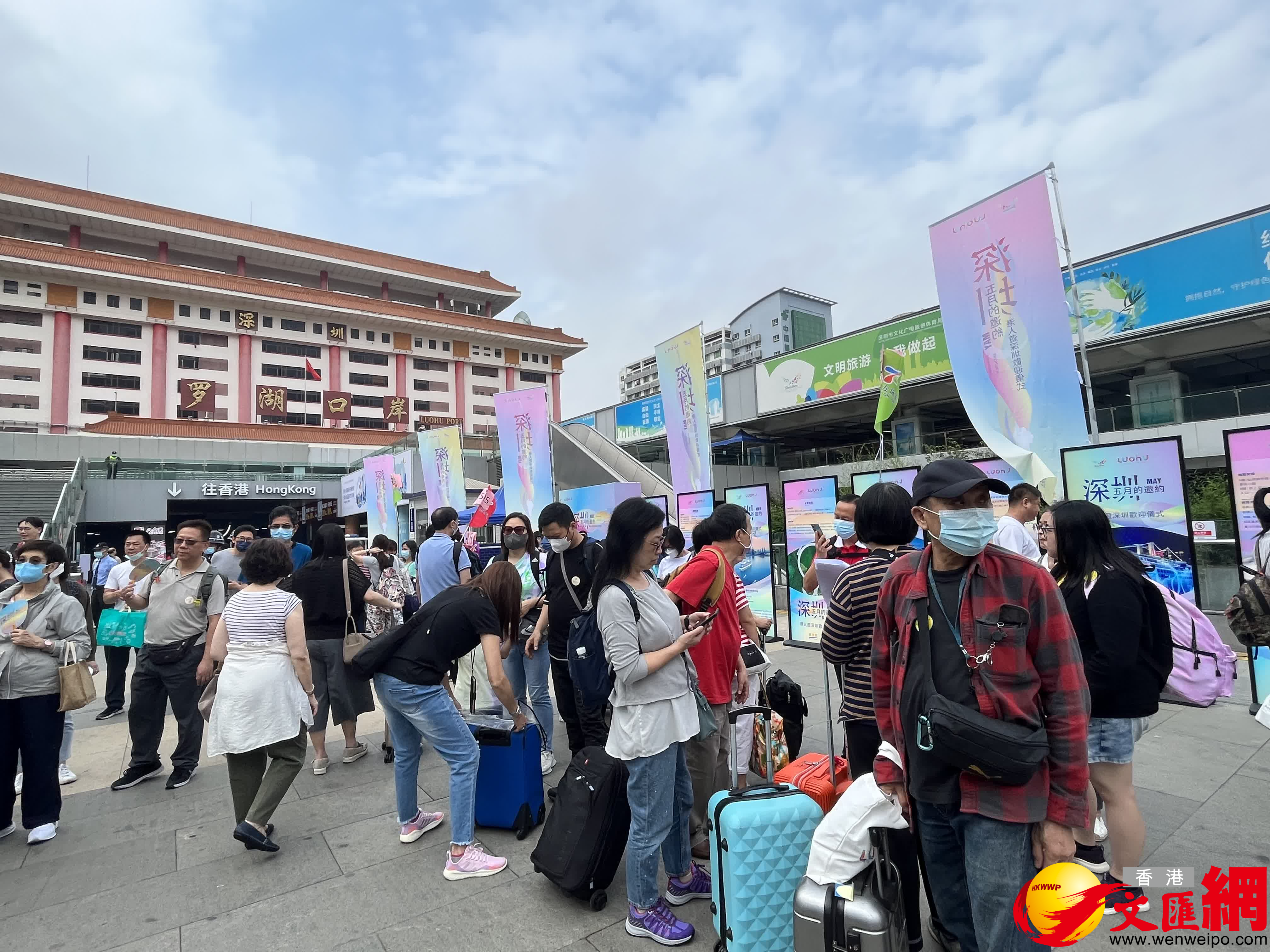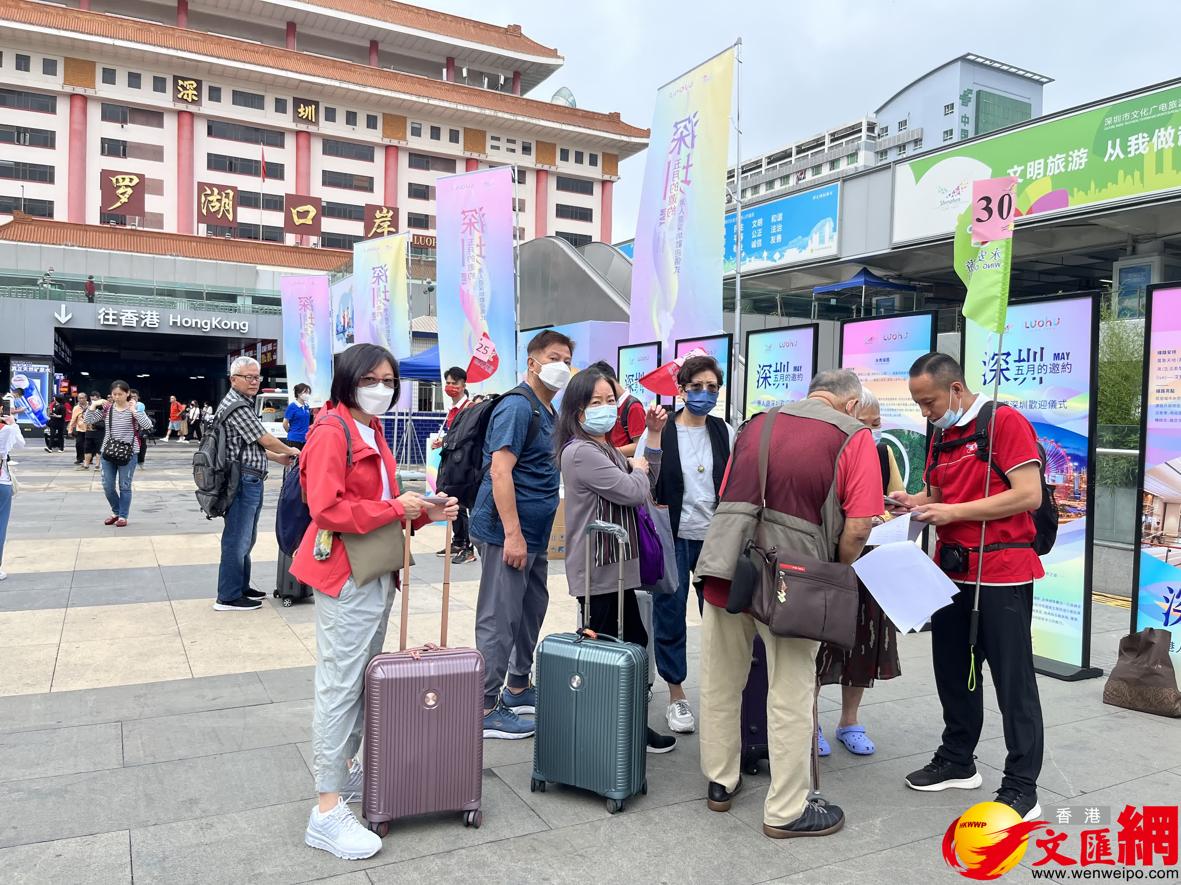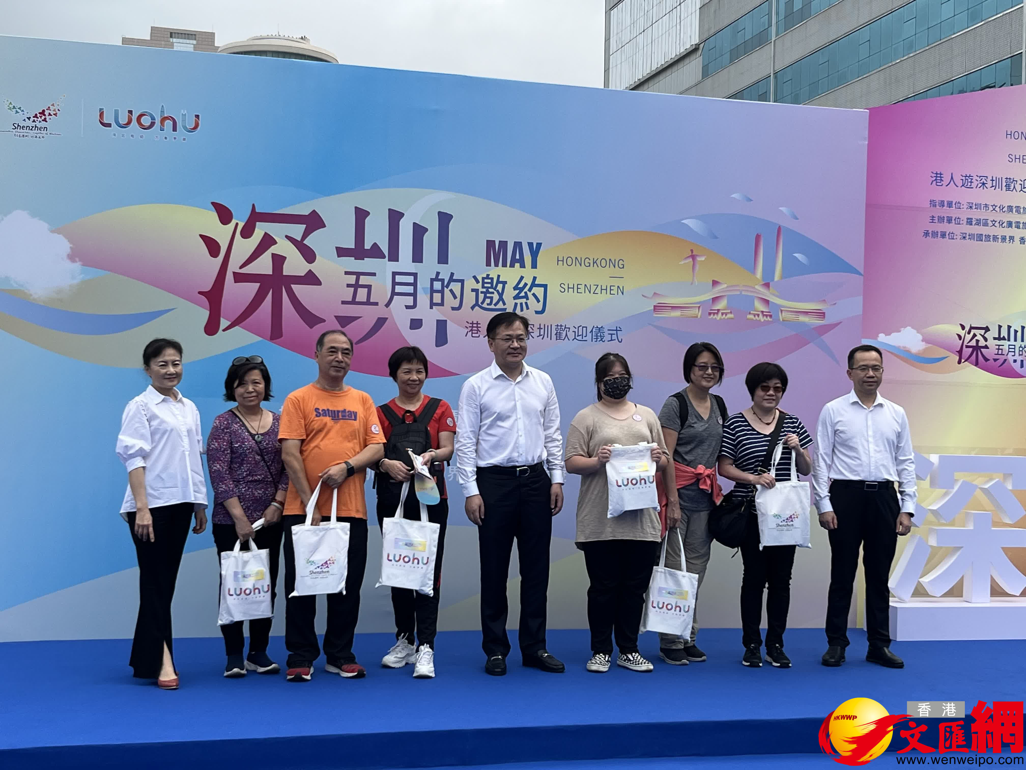 (香港文匯網記者 李望賢 深圳報道)「五一」小長假第一天,今日(29日)上午8時許,羅湖口岸迎來眾多香港旅行團,有的輕裝上陣前來度假,有的攜家帶口結伴出行,氣氛熱烈。羅湖區文化廣電旅遊體育局於羅湖口岸廣場舉行「五月的邀約」港人游深圳迎團儀式,為旅遊的港人代表送上精心準備的小禮物。