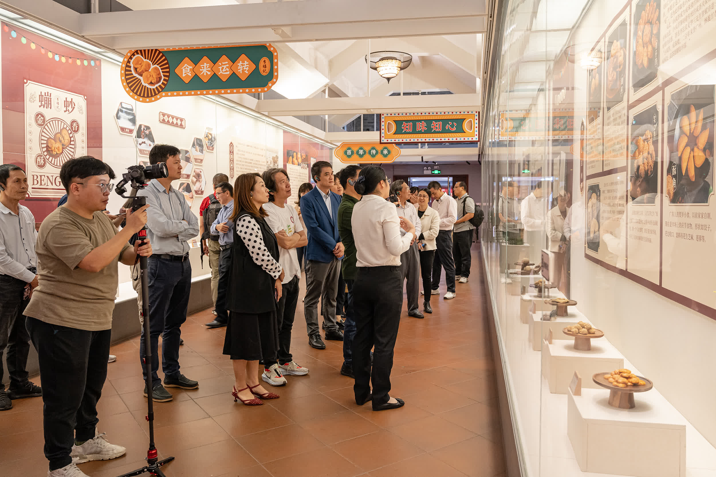 展覽共分四個部分,一是點心藏品展,共展出了傳統糕點相關的珍貴收藏品,從不同角度再現了順德點心文化的豐富內涵;二是節氣與傳統點心文化;三是以大良蟲崩䖢、煎堆、油煎、開口棗為代表,介紹點心的歷史淵源、文化傳承;四是李禧記品牌以及大良蟲崩䖢海內外傳播情況。